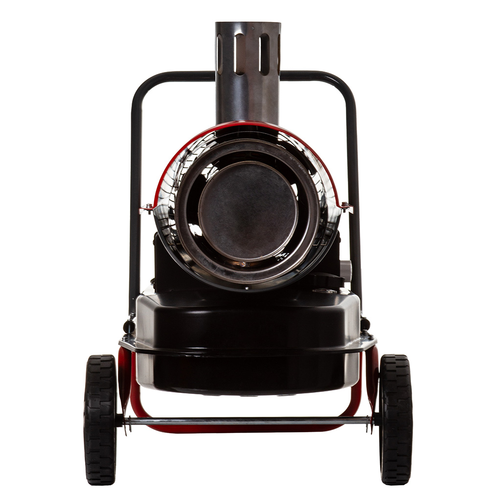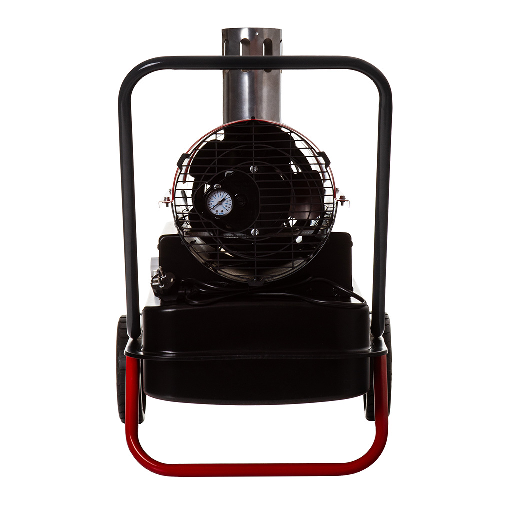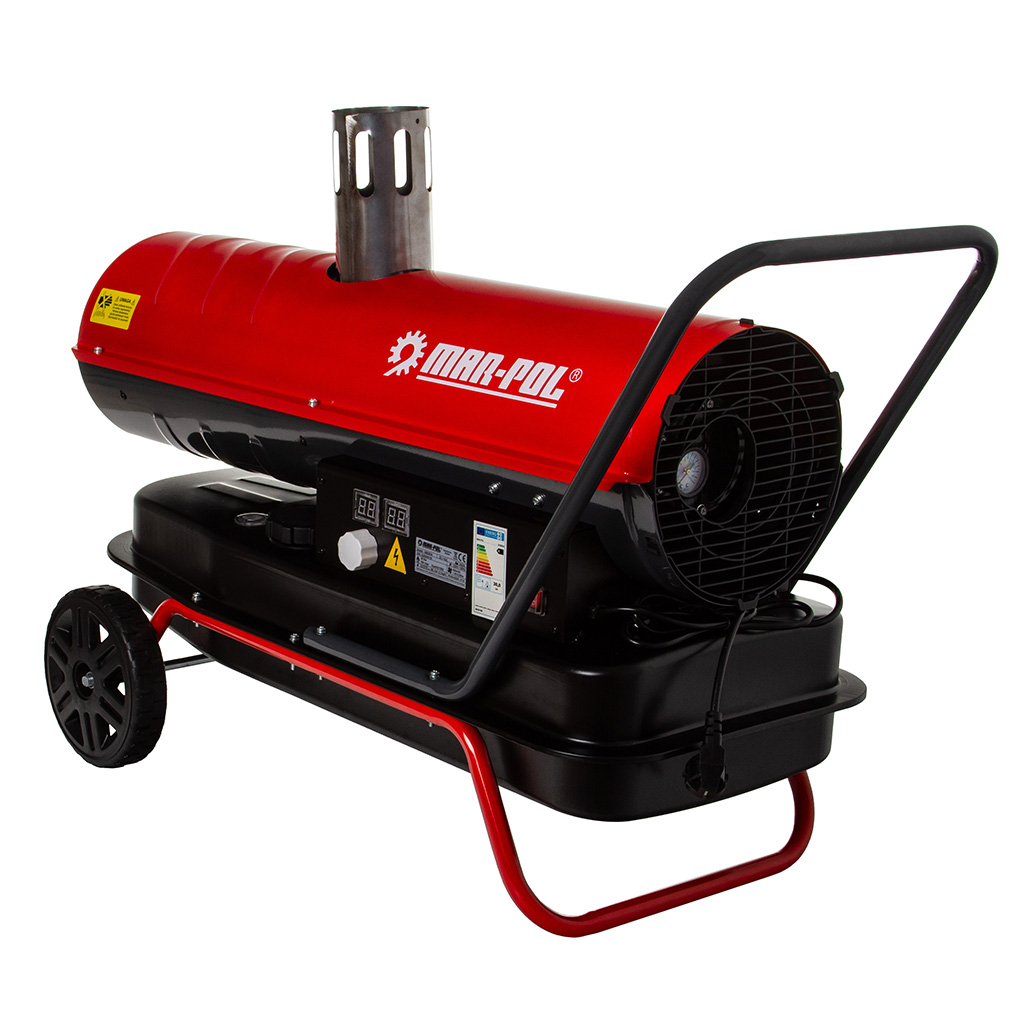 Mobilna nagrzewnica olejowa o mocy 30kW idealnie znajdzie swoje zastosowanie przy ogrzewaniu dużych pomieszczeń. Obudowa urządzenia została wykonana z metalu, natomiast element grzejny ze stali nierdzewnej. Przepływ powietrza wynosi 600m3/h. Dzięki otwartej komorze spalania uzyskujemy wysokie temperatury wydmuchu, pozwalające na bardzo szybkie nagrzanie obiektu lub wysuszenie materiałów. Wyposażona w komin do odprowadzania spalin. Nagrzewnica posiada regulację temperatury za co odpowiada dodatkowy termostat oraz pokrętło regulacji temperatury. Wyświetlacz z lewej strony wskazuje temperaturę otoczenia natomiast wyświetlacz z prawej - temperaturę zadaną. Przekręcenie pokrętła w prawo zwiększa temperaturę do której nagrzewnica będzie dążyć, po jej osiągnięciu zmniejszy moc tak by ją utrzymywać. Wyposażona w koła, uchwyt, podstawki i poręcze ułatwiające ich transport. Jest to idealne rozwiązanie zarówno w domu, na hali magazynowej czy budowie.》》》 NAGRZEWNICA OLEJOWA DMUCHAWA SPALINOWA 30KW KOMIN Z ODPROWADZANIEM SPALIN M80934 《《《