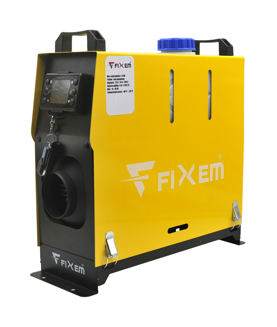 Samochodowa nagrzewnica powietrza jest całkowicie niezależna od działania silnika pojazdu i może być stosowana do ogrzewania powietrza wewnątrz wszystkich pojazdów: Dzięki kompaktowej konstrukcji ten grzejnik samochodowy nadaje się do łatwego montażu we wnętrzu lub nawet pod podłogą. Nagrzewnica jest wyposażona w pilot zdalnego sterowania co pozwala na włączanie/wyłączanie zmianę siły grzania nagrzewnicy bez potrzeby zbliżania się do niej. W nagrzewnicy FIXEM FX21116 w przeciwieństwie do innych nagrzewnic dostępnych na runku umieszczono nowy model wyświetlacza z dodatkowym guzikiem do bezpośredniego odpowietrzenia pompki. Rozwiązanie to znacznie ułatwia użytkowanie ogrzewania.》》》 NAGRZEWNICA OLEJOWA SPALINOWA 12V 24V 230V OGRZEWANIE POSTOJOWE ZESTAW FX21116 《《《