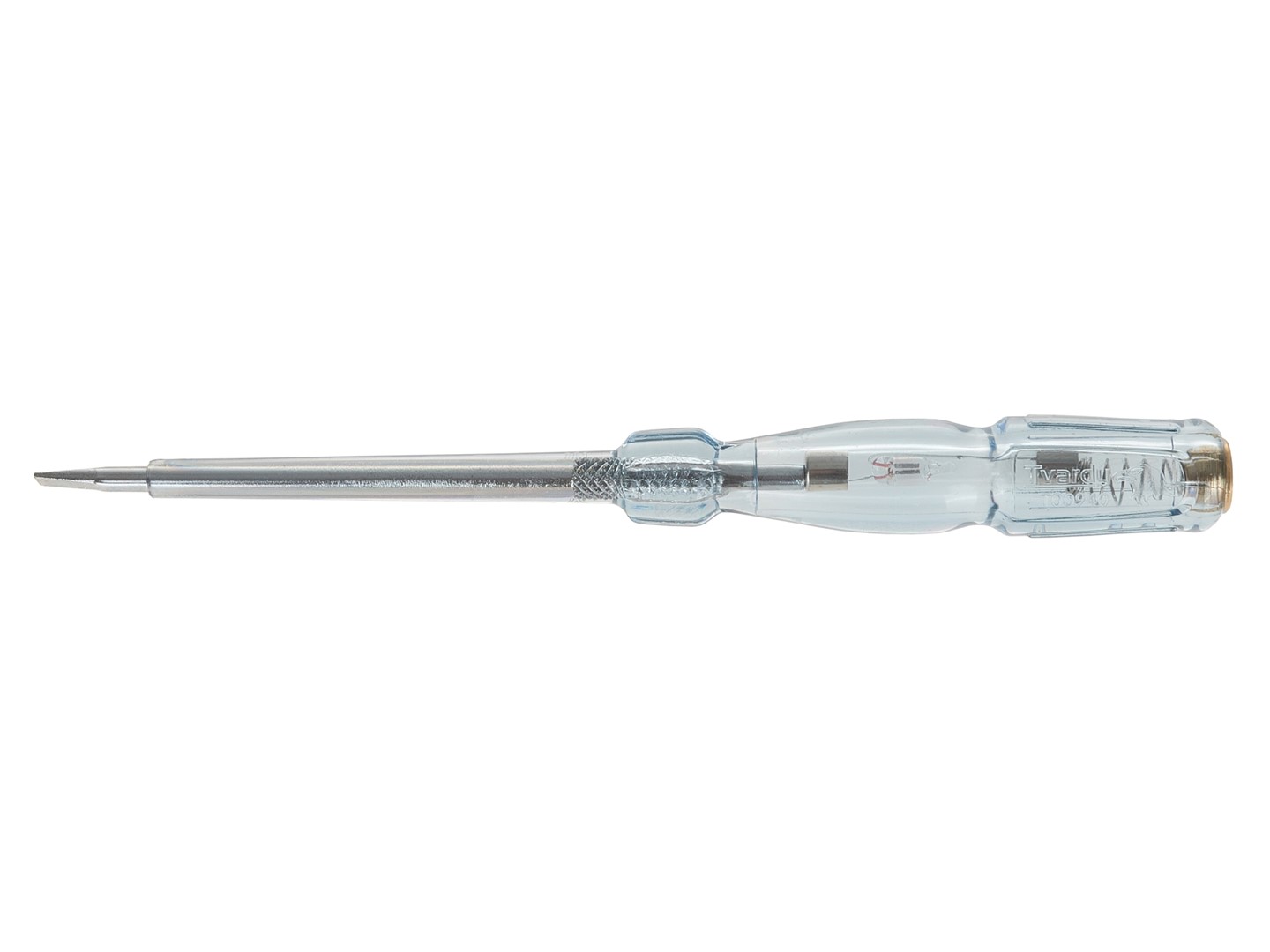 Próbnik napięcia o długości 185 mm to niezawodne i poręczne narzędzie przeznaczone do sprawdzania obecności napięcia w zakresie od 100V do 250V. Dzięki swojej ergonomicznemu kształtowi oraz solidnej konstrukcji, próbnik idealnie leży w dłoni, zapewniając komfort i bezpieczeństwo pracy. Wykonany z trwałych materiałów, jest odporny na uszkodzenia mechaniczne i doskonale sprawdza się w codziennych zadaniach elektrycznych.