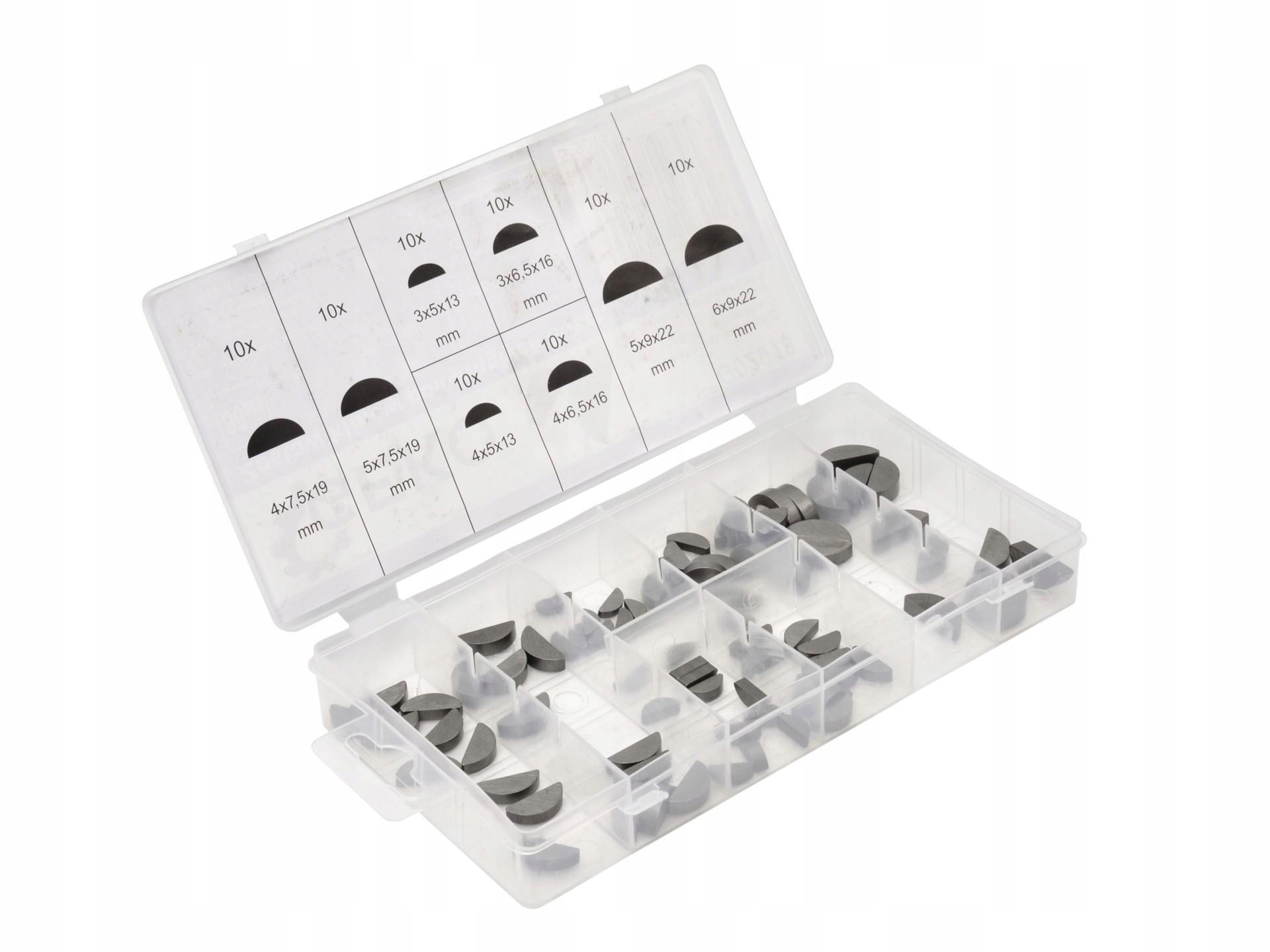 ZESTAW 80 SZTUK KLINÓW PÓŁOKRĄGŁYCH CZÓŁENKOWYCH. CAŁOŚĆ W WYGODNYM SORTOWNIKU. Wyposażenie :
