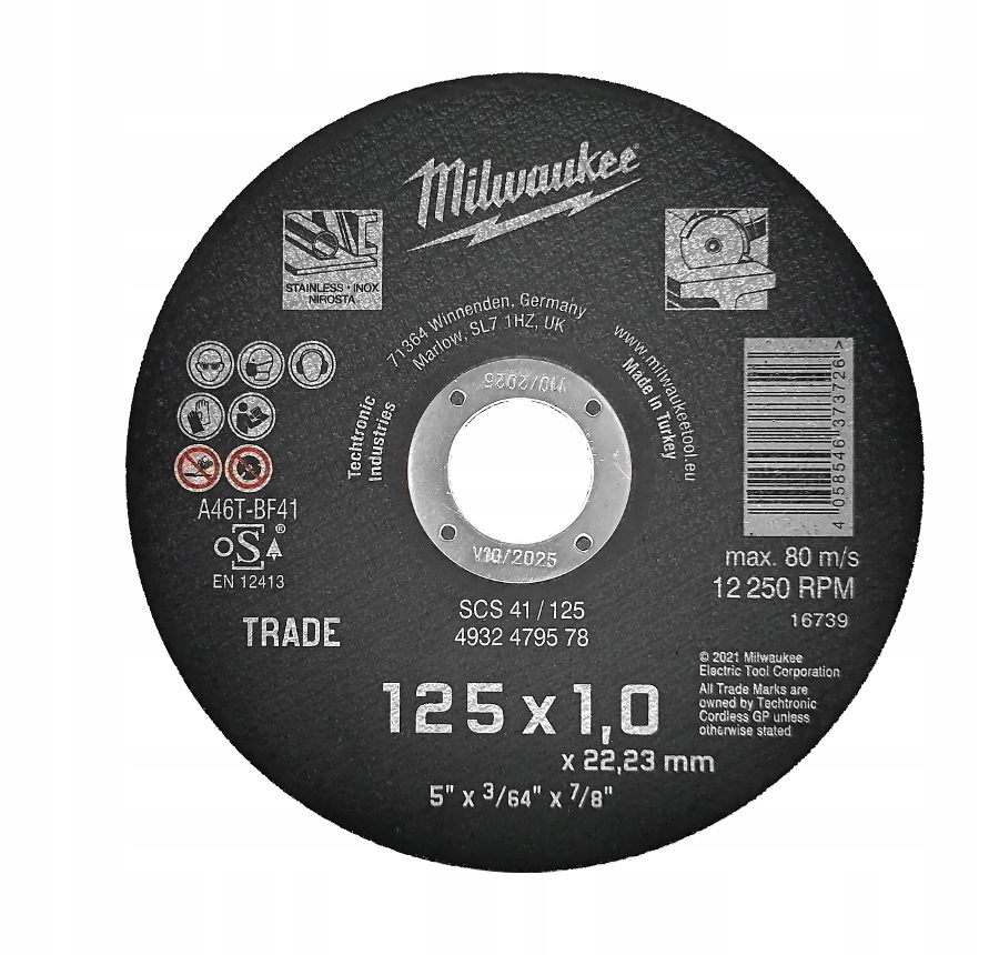 》》》 TARCZA DO CIĘCIA METALU 125X1mm INOX 25szt. MILWAUKEE 25x 4932479578 《《《