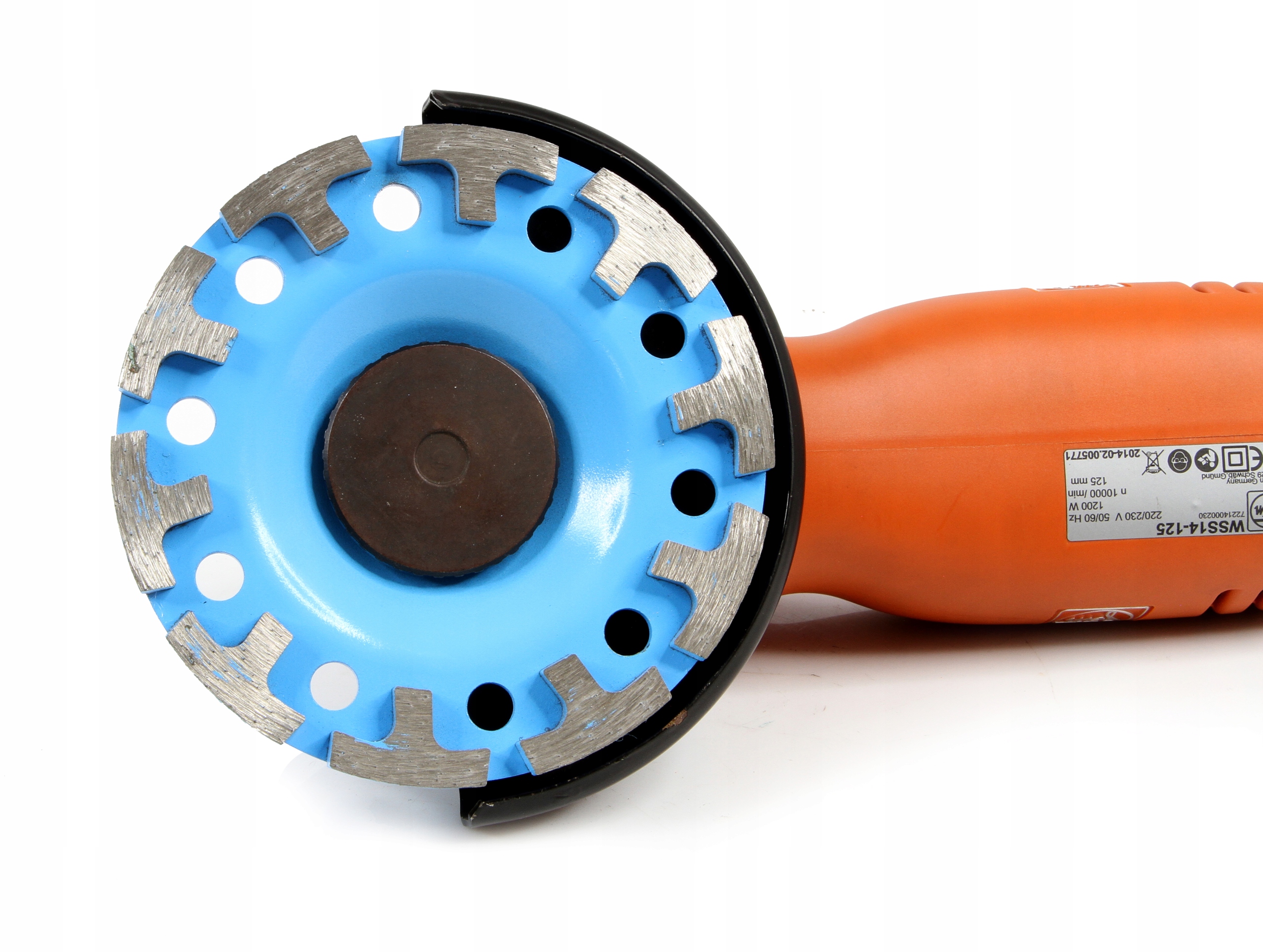 RIPPER CHARAKTERYSTYKA: Specjalna ściernica diamentowa o bardzo dużym diamencie, służy do oczyszczania i szlifowania nierówności na powierzchniach betonu, betonu licowego, cegły, kostki brukowej, klinkieru, gazobetonu, płytki ceramicznej. • Diamentowa tarcza garnkowa o średnicy 125 mm jest przeznaczona do szlifowania powierzchni betonu przy użyciu szlifierki kątowej. • Długą żywotność diamentowej tarczy garnkowej zapewniają doskonałe parametry techniczne. • Nowoczesne procedury obróbki cieplnej i specjalne wykończenie powierzchni zmniejszają zużycie tarczy oraz poprawiają wytrzymałość. • Diament o wysokości 5 mm pozwala na długie użytkowanie tarczy bez konieczności wymiany na nową. • Tarcza idealnie nadaje się do usuwania nierówności, formowania oraz szlifowania dużych powierzchni betonu
