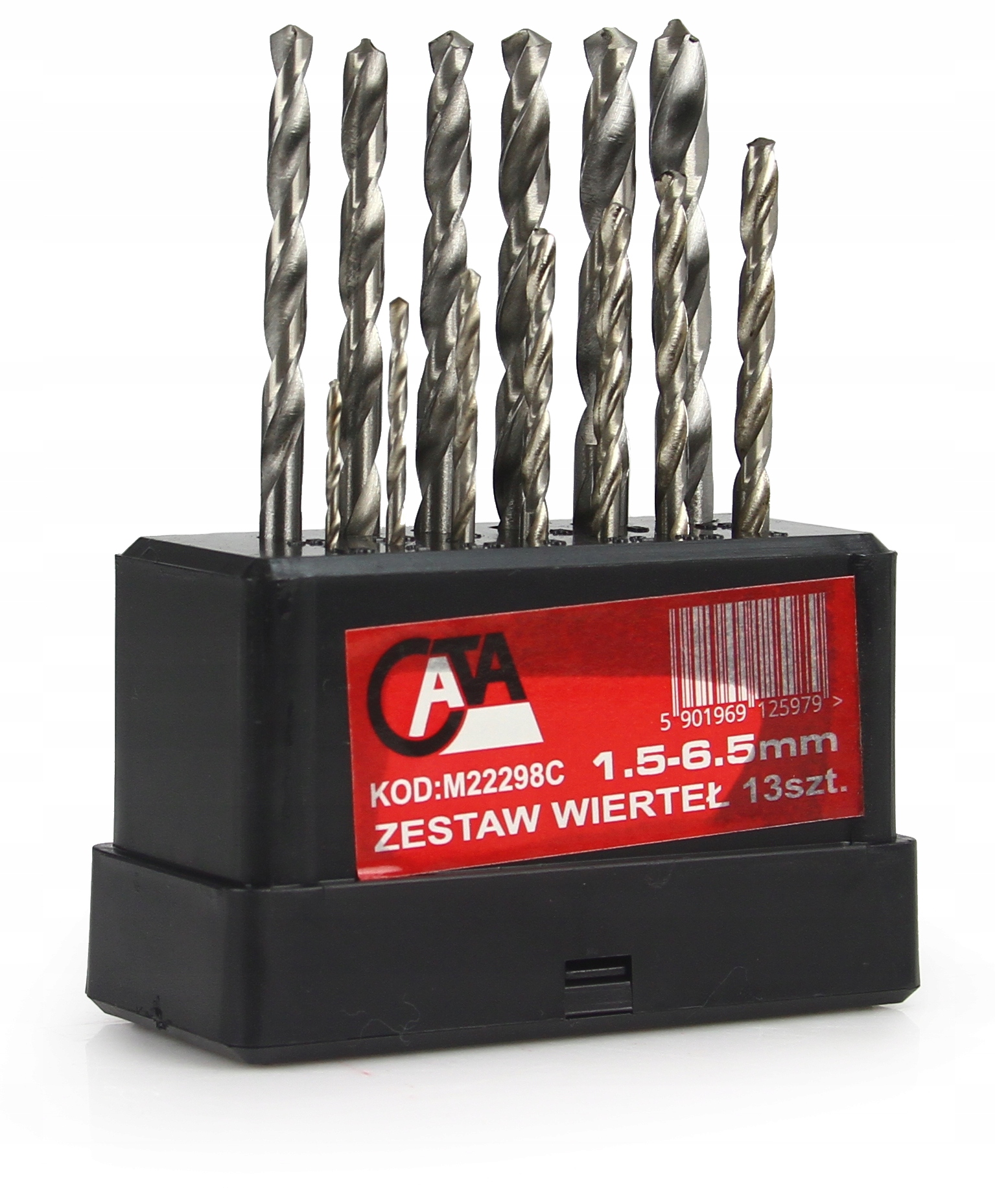 Wiertła firmy CATA charakteryzują się wysoką elastycznością, uzyskaną w wyniku odpowiedniej obróbki cieplnej. Co znacząco zmniejsza ryzyko na złamanie wiertła. Rowek wiórowy pokryty jest warstwą tlenku, która zapewnia szybsze odprowadzenie wiórów. Wygodne i praktyczne pudełko z plastikowym domknięciemWIERTŁA DO METALU ZESTAW 1,5 - 6,5 MM 13 SZTUK WALCOWE