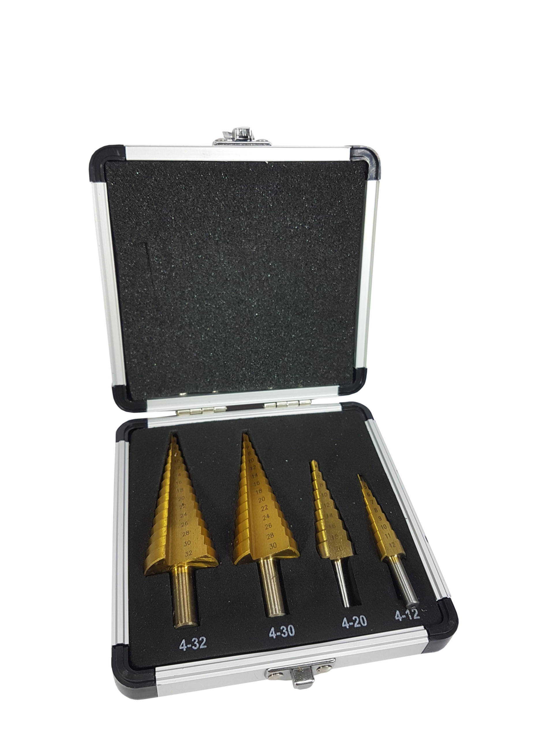 Szlifowane wiertła ze stali szybkotnącej (HSS) pokryte powłoką z tytanu co przedłuża ich żywotność sześciokrotnie w porównaniu z normalnymi wiertłami HSS. Wiertła wiercą najcieńsze blachy bez uprzedniego nawiercania, bez zadziorów, bez przywierania wiórów do wiertła. Głównie do obróbki metali nieżelaznych, blach stalowych cienkościennych i tworzyw sztucznych. Każde wiertło ma naniesioną numerację co znacznie ułatwia kontrolowanie wielkości otworu podczas wiercenia. Wiertła są wyposażone w uchwyt cylindryczny. Zestaw znajduje zastosowanie w blacharstwie, ślusarstwie, branży instalatorskiej itp. Dane Techniczne:WIERTŁA STOPNIOWE ZESTAW 4EL HSS 4-12mm, 4-20mm, 4-30mm, 4-32mm M22320