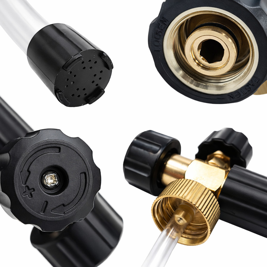 Pianownica posiada przyłącze do myjet serii HD HDS Pianownica idealnie współpracuje ze wszelkiego rodzaju środkami czyszczącymi w stanie płynnym. Pojemność wynosi 1 litr. Mosiężny korpus gwarantuje długotrwałe i bezawaryjne użytkowanie. Montowana jest tuż przy wylocie wody dlatego agresywna chemia omija obieg wewnątrz myjki, niwelując zagrożenie uszkodzenia głowicy. Charakterystyka produktu: Pianownica posiada regulacje kąta strumienia wody z pianą oraz ilość podawania chemii.