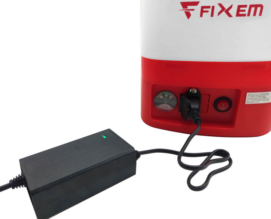 Ładowarka do akumulatorowych opryskiwaczy ogrodowych. ✅ Pasuje do większości opryskiwaczy akumulatorowych np: Ładowarka posiada diodę świecącą w 2 kolorach, zielona i czerwona Po podłaczeniu jej do gniazdka (jeżeli opryskiwacz nie jest podłączony) dioda świeci na zielono. Jeżeli podłączymy ładowarkę do rozładowanego opryskiwacza dioda zacznie świecić na czerwono. Jak tylko akumulator zostanie naładowany dioda z koloru czerwonego zmieni kolor na zielony.