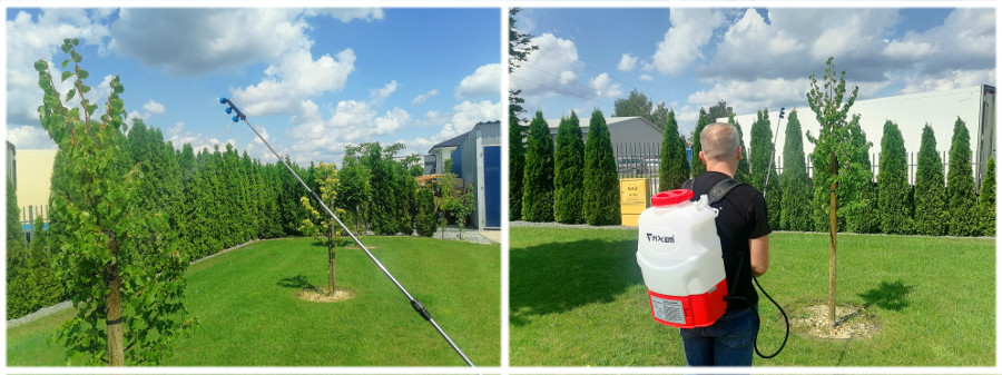 Ten opryskiwacz ogrodowy będzie Twoim najlepszym wyborem, jeżeli poszukujesz narzędzia do oprysku roślin w średnim i dużym zakresie. Opryskiwacz plecakowy z akumulatorem to także idealny model do przeprowadzania oprysków w szklarniach i pomieszczeniach zamkniętych, w których nie sprawdzają się opryskiwacze spalinowe. Akumulatorowy opryskiwacz ogrodniczy to uniwersalne, wszechstronne w zastosowaniu narzędzie ogrodowe do pielęgnacji roślin. Z opryskiwaczem zadbasz o swoje rośliny w sposób kompleksowy – narzędzie umożliwia oprysk roślin w rolnictwie, sadownictwie, w przydomowych ogródkach i na działkach , a także odtłuszczanie, rozpylanie środków zwalczających komary i meszki oraz rozpylanie chemikaliów do dezynfekcji budynków hodowlanych i innych. Silnik akumulatorowy pozwala na zmniejszenie wysiłku podczas oprysków umożliwiając uzyskanie czterokrotnie większej wydajności, niż w przypadku opryskiwaczy ręcznych. Regulowane dysze wraz z teleskopową lancą zapewniają szeroki strumień oprysku, który sam dopasujesz do wymagań wykonywanej pracy. Teleskopowa lanca gwarantuje pełną swobodę ruchu i szeroki zasięg pracy. Plecakowa forma opryskiwacza umożliwia nie tylko jego łatwe przenoszenie, ale także wygodny oprysk za sprawą profilowanych wykończeń i regulowanych szelek. Dodatkowym atutem opryskiwaczy firmy Fixem ® jest zamontowana na tylnej części osłona pleców, która zapewnia wygodę, oraz komfortową pracę. Duży wlew ułatwia napełnianie zbiornika. Sitko znajdujące się we wlewie zabezpiecza przed dostaniem się nieczystości. Dzięki swojej konstrukcji nie wydłuża to czasu napełnienia opryskiwacza. Na dnie zbiornika umieszczono filtr, który dodatkowo zabezpiecza przed dostaniem się nieczystości do pompki. Takie rozwiązanie zapewnia wydłużoną żywotność pompki i tym samym całego opryskiwacza. Opryskiwacz z silnikiem akumulatorowym ma również przewagę nad opryskiwaczami spalinowymi – nie emituje spalin. Opryskiwacze akumulatorowe spełniają najwyższe normy jakościowe i są zaprojektowane tak, aby mogły służyć naszym wymagającym klientom przez lata. Akumulator umieszczony jest w takim miejscu, żeby jego ewentualna wymiana mogła się odbyć bezproblemowo. Bez zbędnej ingerencji w urządzenie. Uszczelnienie zbiornika jest kluczową sprawą w tego typu urządzeniach. W naszym opryskiwaczu zamontowano w nakrętce uszczelkę, oraz zaworek dzięki czemu możemy zachować stałe ciśnienie. Dzięki temu pompka nie musi pracować cały czas. Po wytworzeniu odpowiedniego ciśnienia wyłącza się i automatycznie włącza po jego spadku. W ZESTAWIE: W zestawie znajdą Państwo również komplet zapasowych uszczelek, oraz zapasowy zestaw do montażu szelek. W przeciwieństwie do innych opryskiwaczy dostępnych na rynku opryskiwacz firmy Fixem ® został wysposażony w teleskopową lancę składającą się z 3 części. Dzięki temu możemy regulować ją od 44cm do aż 117cm (długość samej lancy bez rączki i dyszy) ✔️ Funkcja blokady dźwigni (umożliwia ciągłe opryskiwanie bez ściskania pistoletu ręką). Pozwala nam to unikać ciągłego ściskania rączki co po kilku godzinach intensywnej pracy może być uciążliwie. ✅ DANE TECHNICZNE: Opryskiwacz można włączyć za pomoca czerwonego włącznika ( w tej sytuacji wytwarza maksymalne ciśnienie) Można również włączyć go za pomocą potencjometra (pokrętło nad włącznikiem ) dzięki temu możemy regulować ciśnienie. Po prawej stronie włacznika znajdują się diody informujące o naładowaniu akumulatora. Nad diodami umieszczono gniado ładowania. Gniazdo to może być również używane jako zasilanie do turbo dyszy. (Turbo dysze dostępne są na pozostałych naszych ofertach)