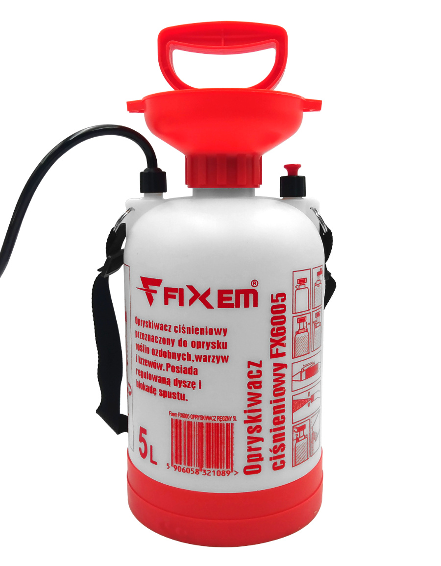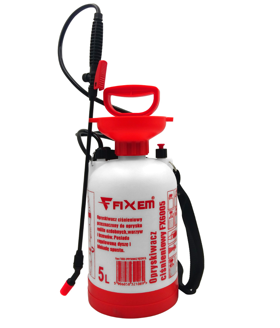 Głównym przeznaczeniem opryskiwaczy ciśnieniowych jest aplikacja środków ochrony roślin oraz nawozów płynnych w nawożeniu dolistnym. Opryskiwacz ciśnieniowy to idealne rozwiązanie do twojego ogrodu lub na działkę. Wybierz praktyczne i funkcjonalne urządzenie, aby systematycznie dbać o swoje drzewa i cieszyć się dorodnymi zdrowymi owocami. Zawór bezpieczeństwa - zabezpiecza i chroni przed przekroczeniem maksymalnego ciśnienia, pozwala upuścić ciśnienie po zakończeniu pryskania. Można go otwierać ręcznie i dokładnie spuszczać w ten sposób ciśnienie. W przeciwieństwie do większości opryskiwaczy dostępnych na rynku opryskiwacz FIXEM wyposażony został w dodatkową podstawę, która chroni przed przypadkowym przewróceniem i zapewnia stabilność. Blokada spustu do pracy ciągłej - wystarczy, że naciśniesz, a potem przesuniesz spust w stronę lancy, co zablokuje spust, umożliwiając pracę bez przerwy Regulowana dysza pozwala dostosować strumień od delikatnej mgiełki do silnego strumienia, co czyni go idealnym do różnych zastosowań - od precyzyjnego opryskiwania delikatnych roślin po intensywne nawadnianie większych obszarów. ✅ DANE TECHNICZNE: