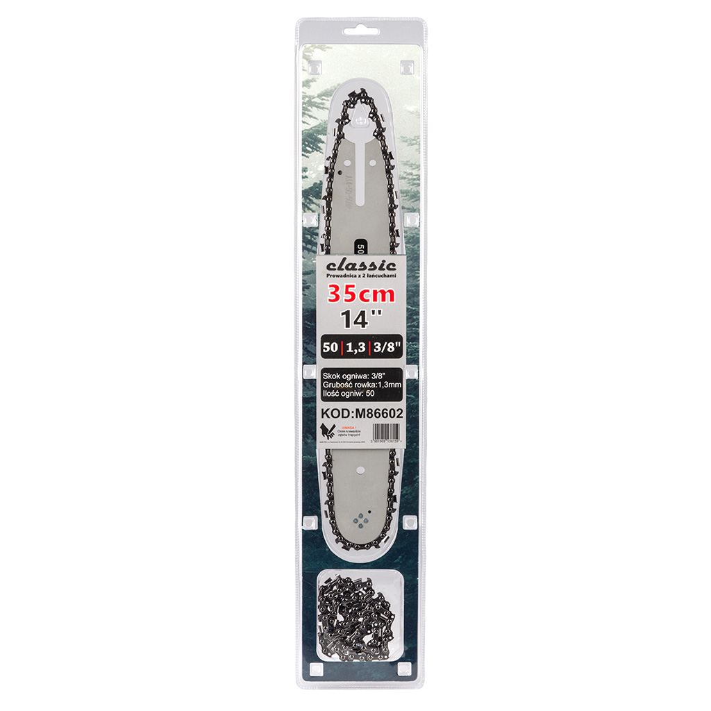 Prowadnice wykonane są z bardzo twardego materiału odpornego na ścieranie i wysoką temperaturę, jaka powstaje w czasie pracy pilarką. Sprawdzają się w najtrudniejszych warunkach, idealnie przenosząc moc pilarki na wydajność cięcia. Do prowadnicy w zestawie znajdują się dwa łańcuchy. Prowadnice cieszą się dużym uznaniem wśród osób wykorzystujących piły spalinowe w codziennej pracy zawodowej.》》》 PROWADNICA DO PIL PILAREK ŁAŃCUCHOWYCH Z 2 ŁAŃCUCHAMI 14" 40 1,3mm 3/8" M86602 《《《