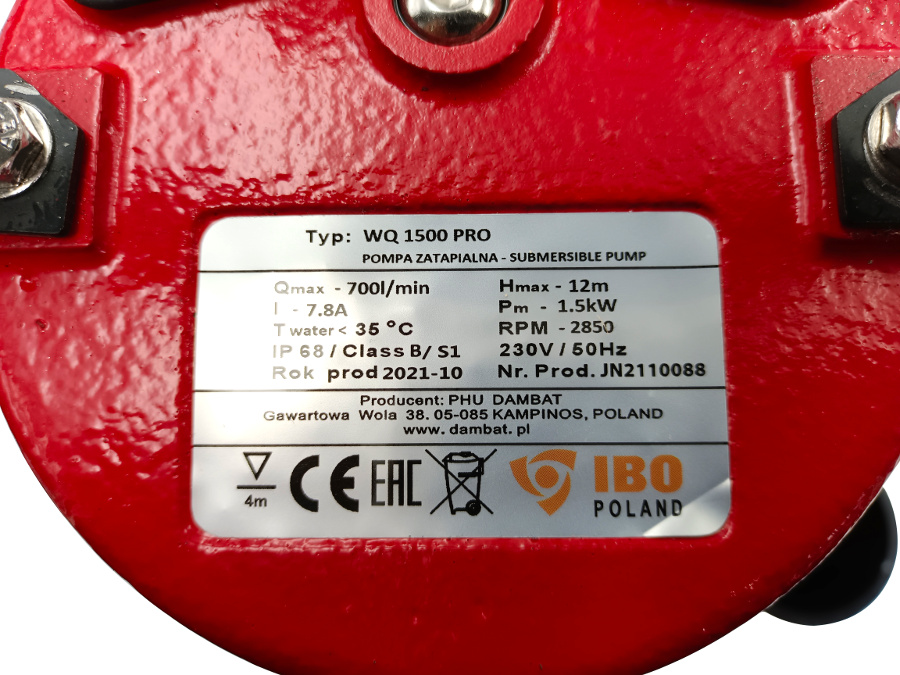 》》》 POMPA ZATAPIALNA SZLAMOWA BUDOWLANA 230V WQ 1500 PRO IBO® 000905《《《