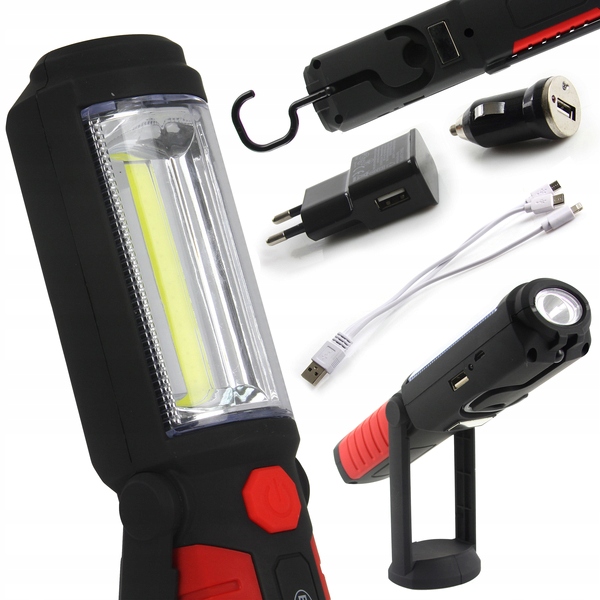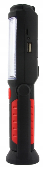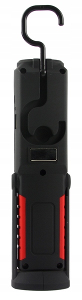 Latarka posiada główne światło umieszczone na panelu przednim, światło nie jest skupione, lecz oświetla duży obszar wokół siebie, co daje szerokie pole robocze Latarka jest wyposażona światło pomocnicze znajdujące się w części czołowej urządzenia, charakteryzujące się tym, że wiązka światła jest bardziej skupiona Latarka wyposażona jest w specjalny uchwyt posiadający możliwość regulacji w aż KILKUNASTU pozycjach co gwarantuje, że dopasujemy kąt padania światła idealnie według naszych potrzeb. Latarka posiada niezwykle użyteczną zawieszkę, która dzięki specjalnemu rozwiązaniu może się obracać o 360 stopni, co pozwala na szerokie zastosowanie: W turystyce - oświetlenie wnętrza namiotu - oświetlenie drogi W warsztacie - oświetlenie trudno dostępnych przestrzeni W domu - oświetlenie pomieszczeń podczas braku prądu W samochodzie - Oświetlenie komory silnikowej,wnętrza pojazdu oraz bagażnika ✔️Zawieszkę można złożyć jednym ruchem i schować ją w specjalnie wyprofilowanym wgłębieniu w obudowie, dzięki czemu zawieszka nie zajmuje miejsca wystając poza obrys latarki - co może być uciążliwe Latarka posiada 3 silne magnesy (dwa na dole, jeden z tyłu) za pomocą, których możemy przyczepić latarkę do dowolnej powierzchni metalowej. Mocny magnes gwarantuje, że latarka nie będzie odpadała od powierzchni tak, jak w innych latarkach ze słabym magnesem. Przykładowo idealnie przydaje się w: W samochodzie - Oświetlenie komory silnikowej,wnętrza pojazdu oraz bagażnika / z montażem na magnesie W warsztacie - Oświetlenie powierzchni roboczej / z montażem na magnesie ✅ Dane techniczne :