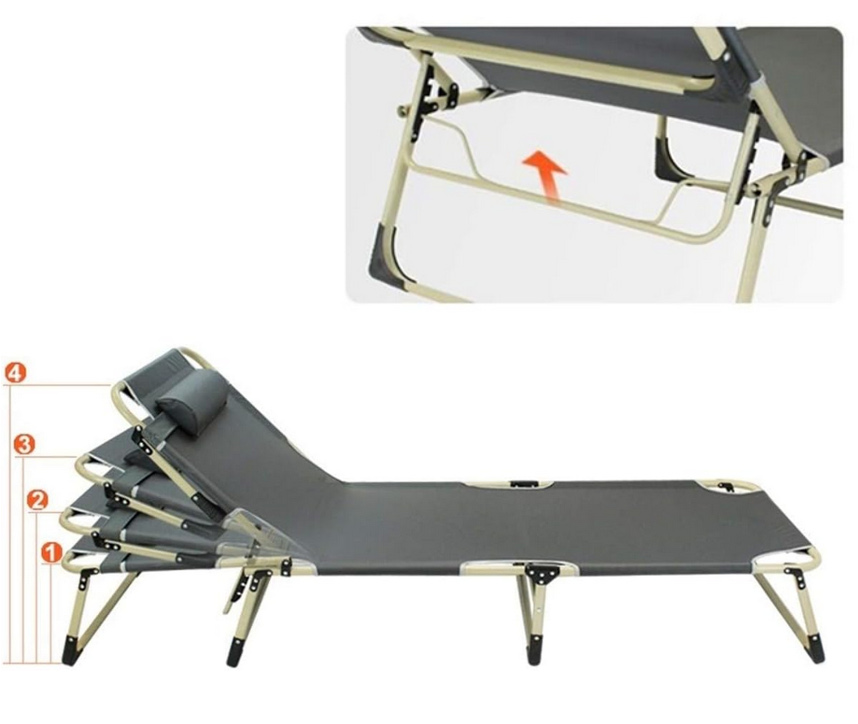 Składane łóżko polowe idealne do odpoczynku w domu oraz na świeżym powietrzu: w ogrodzie czy na tarasie. Sprawdzi się podczas wizyty gości lub wakacji spędzonych na łonie przyrody. Łóżko posiada regulację pochylenia oparcia ( 3 pozycje). Możliwość rozłożenia całkowicie na płasko. Do łóżka dołączona jest poduszka gwarantująca wygodę użytkowania. Leżanka po złożeniu zajmuje mało miejsca dzięki czemu jest łatwa i wygodna w przechowywaniu i transporcie. Stelaż wykonany jest ze stali malowanej proszkowo w kolorze beżowym. Posiada plastikowe antypoślizgowe narożniki. Rozmiar profilu 26x17 mm. ✅ Wymiary leżaka: SKŁADANE ŁÓŻKO POLOWE