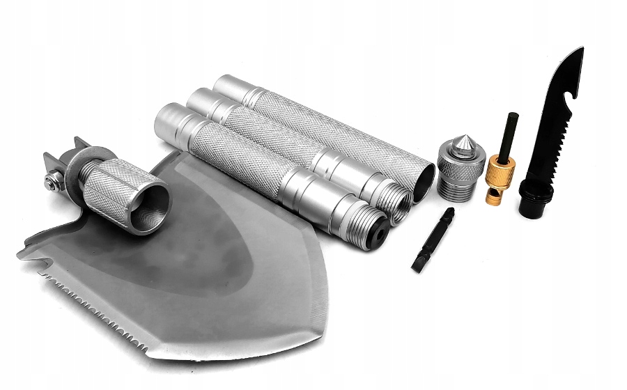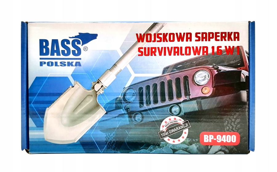 Wielofunkcyjna łopatka survivalowa to jedno akcesorium, które łączy w sobie wiele różnych funkcji. Będzie niezastąpiona w trudnych warunkach terenowych, na campingu, obozie czy pieszej wyprawie. Zabierając ze sobą tę poręczną saperkę, możesz nie tylko użyć jej do kopania w ziemi, ale wykorzystać także pozostałe dołączone akcesoria. Wystarczy jedno akcesorium, by zapewnić sobie kilka różnych funkcjonalności, które z pewnością przydadzą się w trudnych warunkach z dala od cywilizacji. Zestaw survivalowy BASS POLSKA ® składający się z wielofunkcyjnej saperki, wyposażonej w szereg niezbędnych do przetrwania narzędzi. Saperka jest w pełni składana i rozkładana - w komplecie z praktycznym pokrowcem jej przenoszenie jest bardzo komfortowe. ✅ Dane techniczne: SAPERKA 16w1 BASS POLSKA Wkrętak płaski i krzyżakowy Bit dwustronny płaski i krzyżakowy przydatny do prostych napraw. Nóż - przecinak do pasów - otwieracz do butelek Jeżeli potrzebujesz długiego, ostrego narzędzia, bez problemu możesz odkręcić łopatę od trzonu i w jej miejscu umieścić ostrze noża. Krzesiwo Krzesiwo- proste i niezawodne narzędzie do rozpalenia ognia Gwizdek alarmowy Po wykręceniu krzesiwa otrzymamy głośny i łatwy w użyciu sygnalizator akustyczny do wzywania pomocy. Zbijak do szyb Do ostatniego elementu rękojeści przykręcony jest zbijak do szyb, który w awaryjnej sytuacji może uratować życie Tobie lub Twoim bliskim.