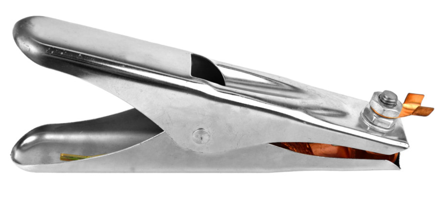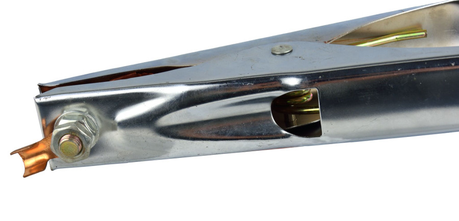 Profesjonalny uchwyt masy, do spawarek o wydajności prądowej do 500A. Kleszczowa konstrukcja zacisku oraz kształt wewnętrzny szczęk połączonych miedzianą plecionką, zapewnia optymalną powierzchnie styku przewodu masowego na zapinanym elemencie. Wyprowadzony zacisk montażowy, ułatwia sprawną wymianę uchwytu oraz właściwe połączenie elektryczne. Kleszcze wykonane z blachy stalowej niklowanej.》》》 RĄCZKA UCHWYT SPAWALNICZY MASA ZACISK KLEMA 500A M79400 《《《