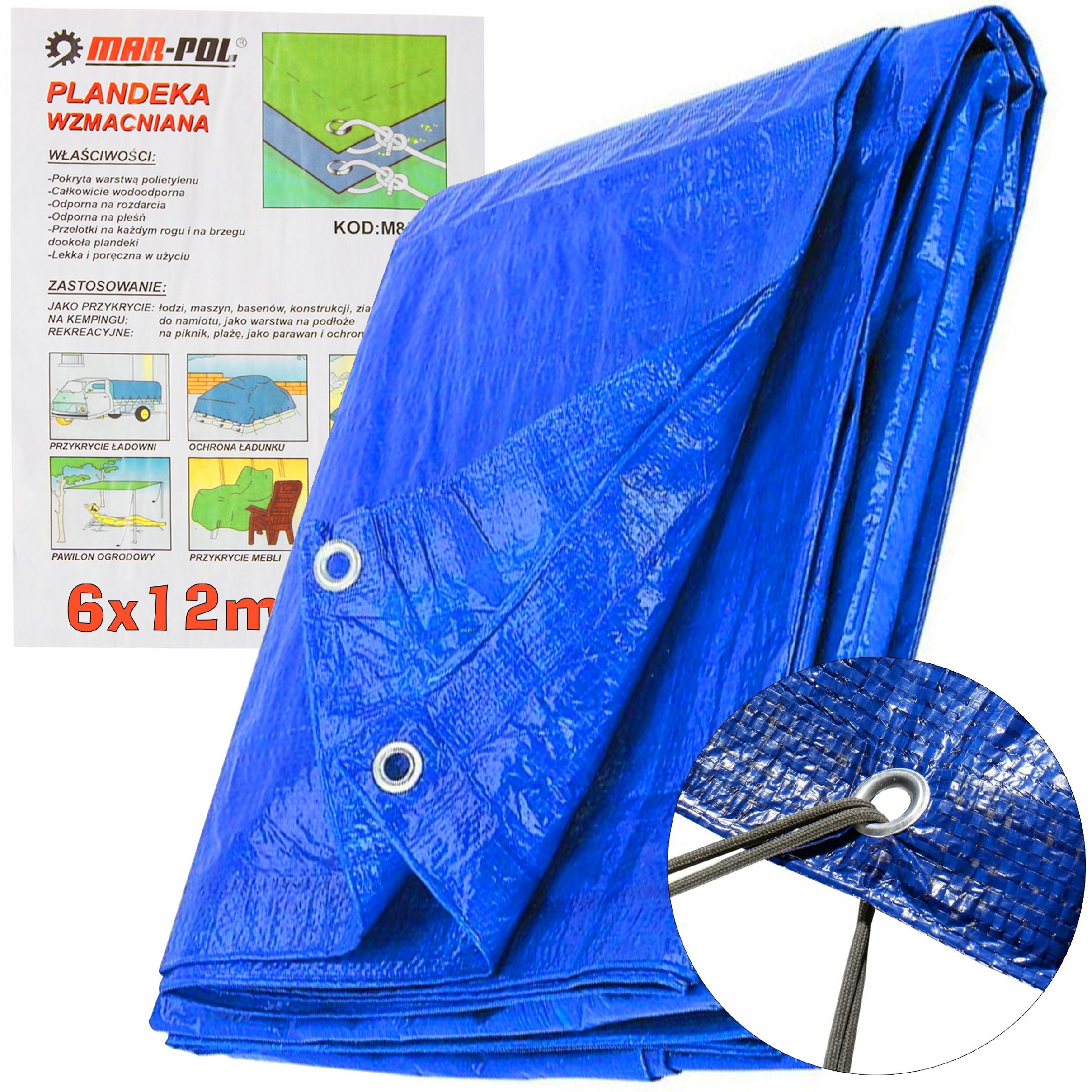 PLANDEKA OKRYCIE 6X12M PŁACHTA MROZOODPORNA WODOODPORNA WZMACNIANA 12X6M