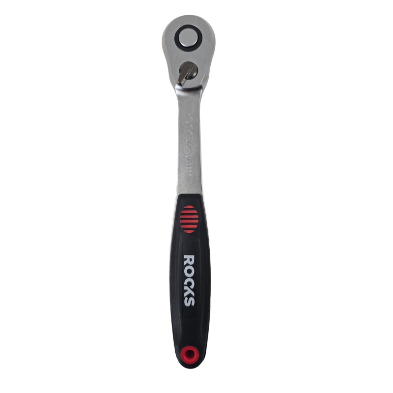 Doskonała, ultra cienka grzechotka ROOKS o obniżonym profilu oraz większej wytrzymałości. Grzechotka wykonana jest ze stali wysokostopowej CrMo, jest o 30% cieńsza niż standard, o 23% lżejsza oraz dwukrotnie bardziej wytrzymała. Rękojeść wykonana jest z wytrzymałego na chemię i obciążenia tworzywa TPOR oraz posiada ergonomiczny kształt. Część metalowa wypełnia 100% rękojeści, co podnosi wytrzymałość narzędzia. Grzechotki ROOKS posiadają 90 zębów oraz minimalny skok pracy tylko 4 stopnie, co ułatwia jej manewrowanie w ciasnych przestrzeniach.