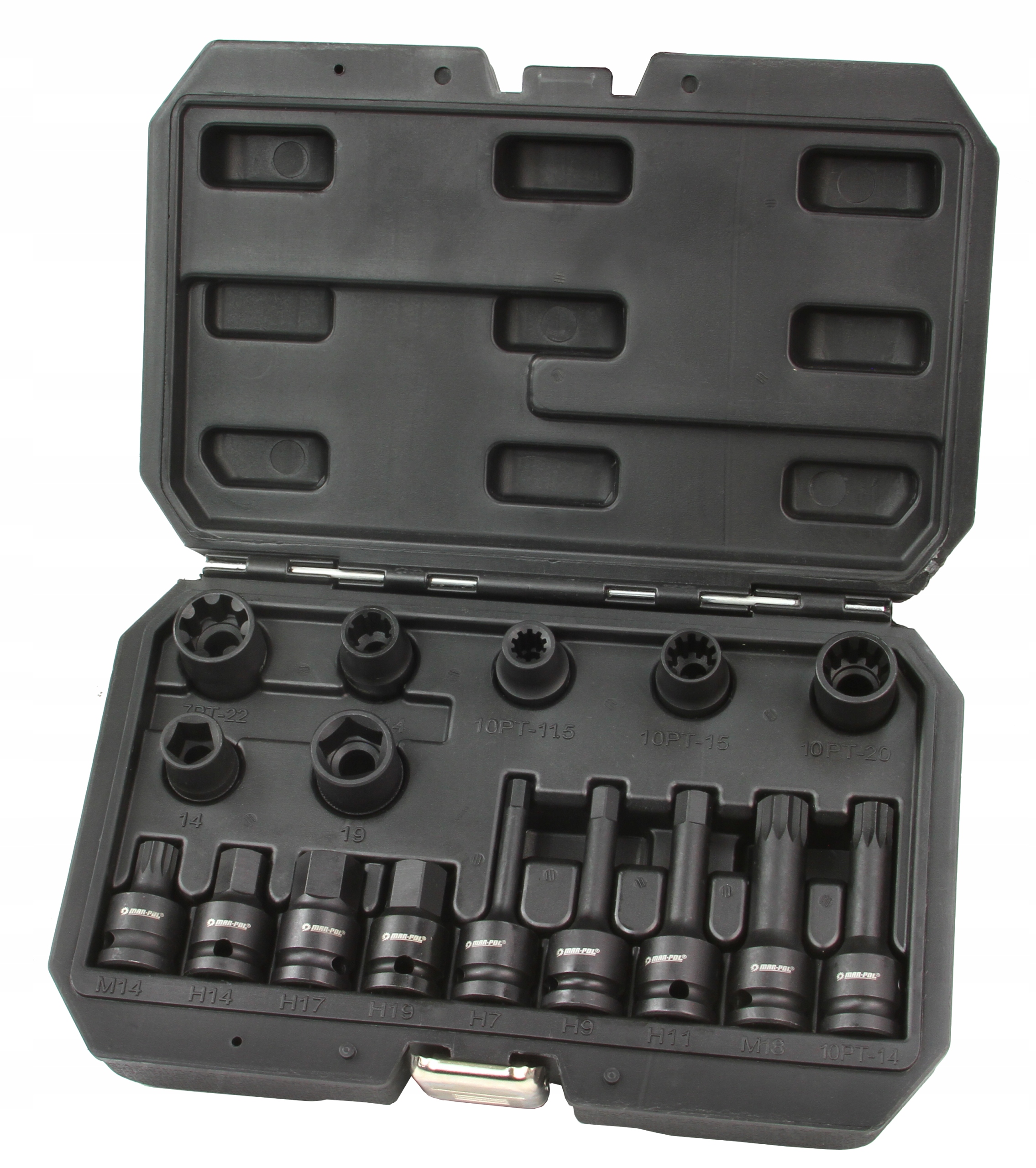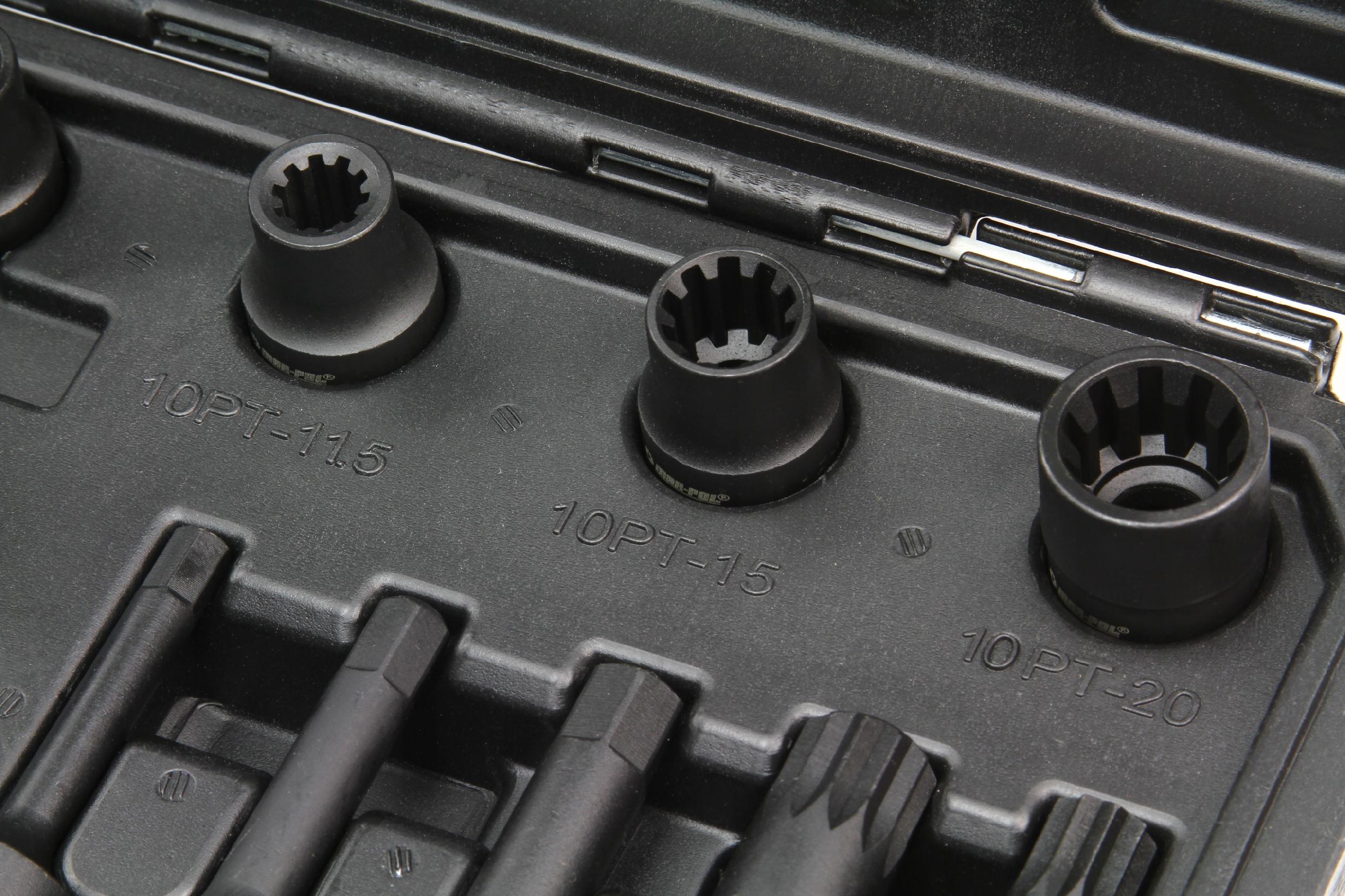 Przydatny w każdym warsztacie samochodowym 16-elementowy zestaw przeznaczony do zacisków hamulcowych. ZESTAW ZAWIERA: ✔️ nasadki specjalne pięciokątne 1/2” 5-punktowe: 14 mm, 19 mm ✔️ nasadki 1/2” 7-punktowe: 14 mm, 22 mm oraz 10-punktowe: 11,5 mm, 15 mm, 20 mm ✔️ klucz trzpieniowy sześciokątny 1/2”: 14 mm, 17 mm, 19 mm (L=45 mm) oraz 7 mm, 9 mm, 11 mm (L=78 mm) ✔️ klucze trzpieniowe Spline 1/2”: M14 (L=45 mm), M18 (L=78 mm) ✔️ klucz trzpieniowy Spline 1/2” 10-punktowy: 14 mm (L=78 mm) ✔️ elementy wykonane ze stali CrMo i CrV ✔️ uchwyt narzędziowy: 1/2" (12,7 mm