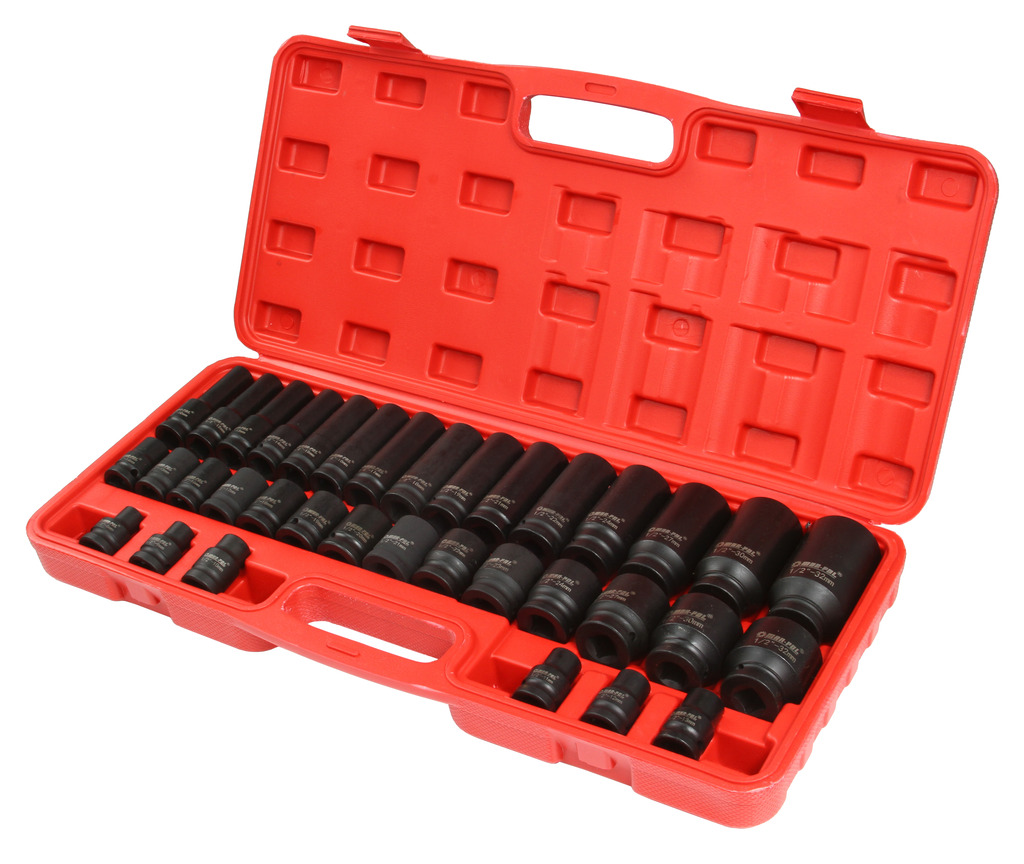 Duża ilość rozmiarów nasadek pozwoli na wykonanie praktycznie każdego zadania. Specjalistyczne nasadki udarowe, przeznaczone do współpracy z urządzeniami pneumatycznymi, które pracują w bardzo ciężkich warunkach pod zmiennymi obciążeniami. Nasadki przez długi czas zachowują swój nominalny wymiar oraz nie pękają pod wpływem pracy udarowej. Szczególnie polecane do profesjonalnych serwisów ogumienia oraz samochodowych. 8, 9, 10, 11, 12, 13, 14, 15, 16, 17, 18, 19, 20, 21, 22, 23, 24, 27, 30, 32 mm 10, 12, 13, 14, 15, 16, 17, 18, 19, 21, 22, 24, 27, 30, 32 mm