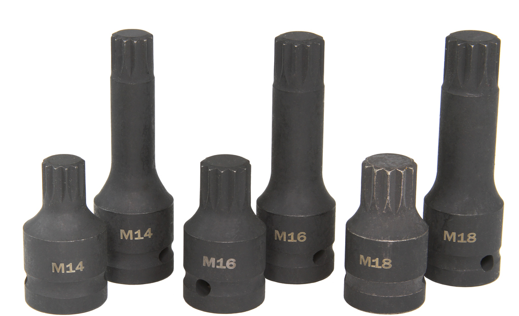 Zestaw kluczy udarowych spline stosowany w samochodach z grupy VAG, m.in Volkswagen, Audi, Skoda. ✅ Cechy produktu M14 | M16 | M18 x 45mm M14 | M16 | M18 x 78mm
