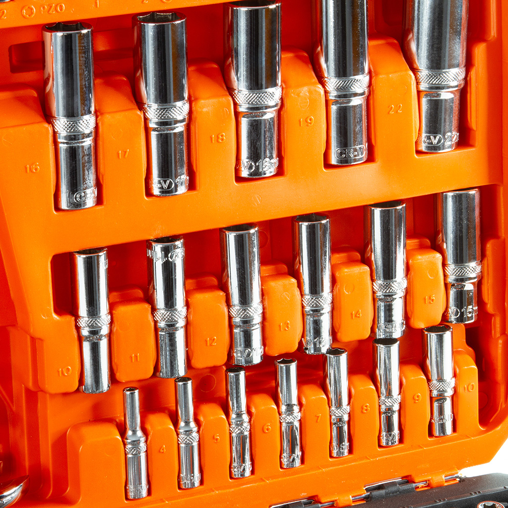 - 14 szt. 1/2" nasadki 6-kątne: 13, 14, 15, 16, 17, 18, 19, 20, 21, 22, 24, 27, 30, 32 MM