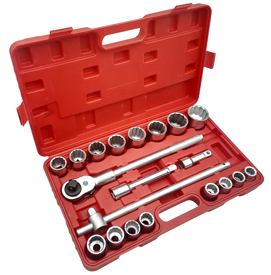 Profesjonalny zestaw klucz nasadowych 3/4". Idealne nadają się do dużych samochodów ciężarowych jak i maszyn rolniczych ,wykonane z mocnych materiałów co świetnie przekłada się na ich trwałość. Niezbędny w każdym warsztacie samochodowym, nasadki tej wielkości pomogą przy naprawie ciężarówek czy maszyn rolniczych. Idealne przy odkręcaniu lub dokręcaniu dużych śrub. Wszystkie nasadki oraz przejściówki znajdują się w praktycznej walizce. Zestaw składa się z 21 elementów. ✅ Zestaw zawiera: