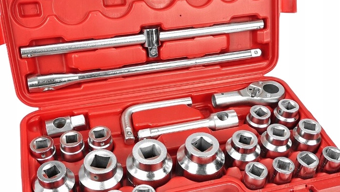 Wyjątkowy zestaw narzędzi firmy MAR-POL. Niezbędny w każdym warsztacie samochodowym jak i przydomowym garażu. Zestaw składa się aż z 26 elementów wykonanych z wysokiej jakości stali chromowo-wanadowej CrV. Całość została spakowana w poręcznej walizce. Zestaw idealnie pasuje do naprawy samochodów ciężarowych, jak i maszyn rolniczych. ✅ W skład zestawu wchodzi: Nasadki zostały wykonane SPECJALNEJ STALI CHROMOWO-WANADOWEJ. Gwarantują one odporność na korozję, ścieranie i wpływ wysokich temperatur, dzięki czemu będą służyć przez długie lata.
