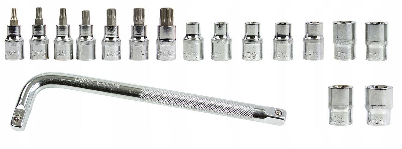 Zestaw kluczy nasadowych torx 1/2" 17 pcs MAR-POL Nasadki wykonane z wysokiej jakości stali. Kompletny zestaw składający się z nasadek krótkich. Precyzja wykonania nasadek gwarantuje wysoką jakość i trwałość podczas użytkowania. Polecany do każdej branży technicznej. ✅ W SKŁAD ZESTAWU WCHODZI: ⭐ Nasadki torx: ⭐ Bity torx: ⭐ Przedłużka TYP-L 250 mm ⭐ Walizka