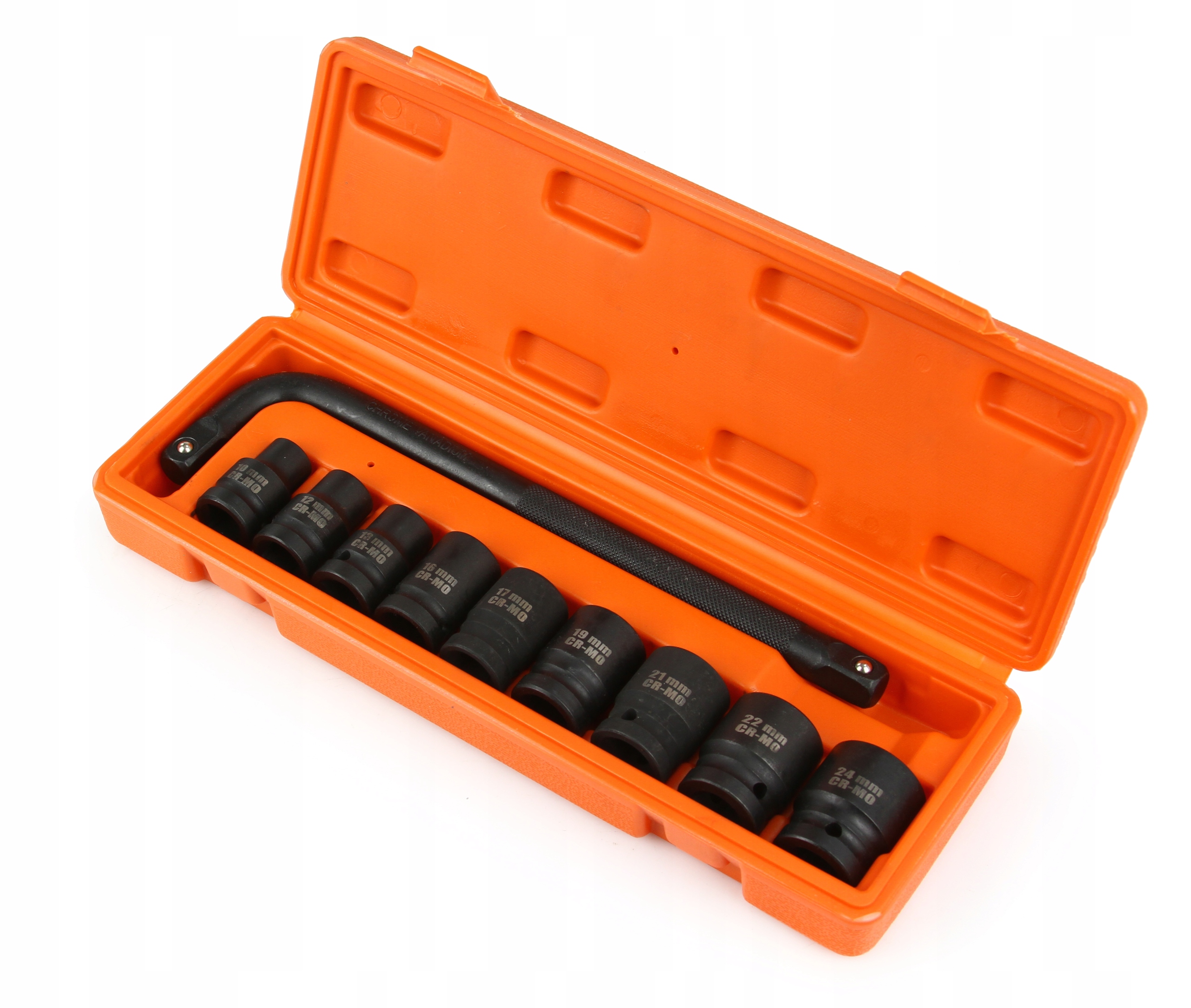 Nasadki wykonane z wysokiej jakości stali Kompletny zestaw składający się z nasadek, przedłużki Precyzja wykonania nasadek gwarantuje wysoką jakość i trwałość podczas użytkowania Polecany do każdej branży technicznej. Idealny dla: warsztatów samochodowych wulkanizacyjnych oraz serwisów majsterkowiczów