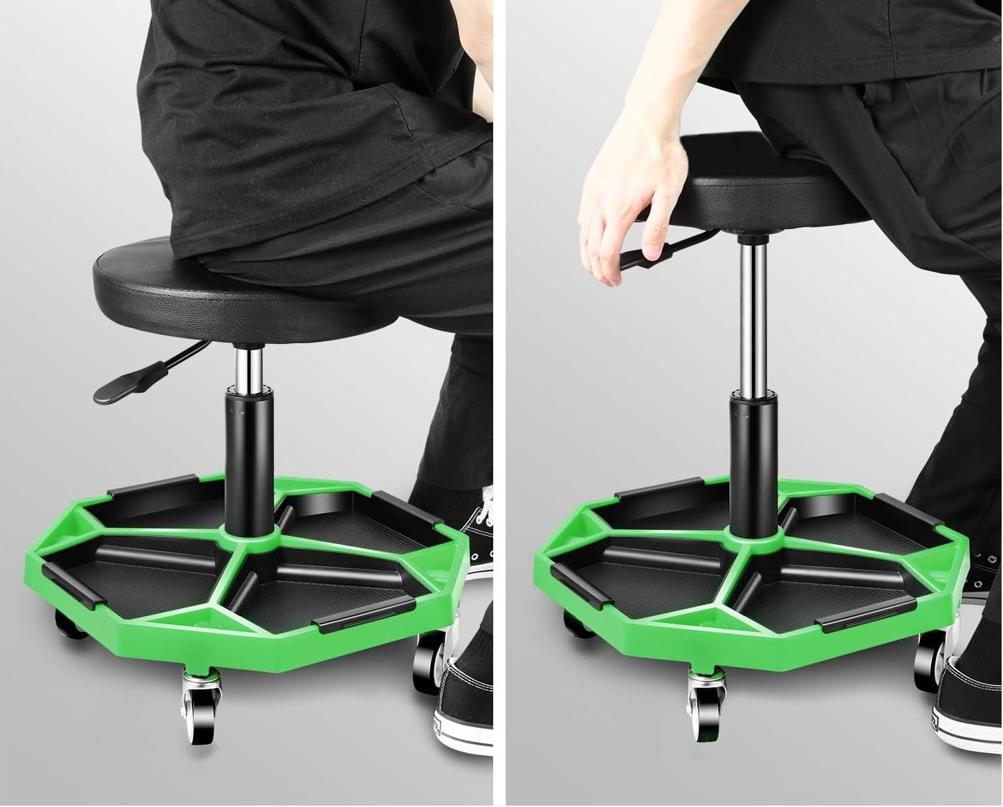 Taboret warsztatowy stworzony z myślą o użytkownikach, którzy cenią komfort pracy i szybki dostęp do narzędzi. To praktyczne, stabilne i wyjątkowo wygodne siedzisko, które sprawi, że każda praca w pozycji niskiej stanie się łatwiejsza i mniej męcząca. Został wyposażony w miękkie, profilowane siedzisko, które zapewnia wygodę nawet podczas długich godzin pracy. Regulowana wysokość pozwala dopasować taboret do indywidualnych potrzeb, gwarantując optymalną pozycję roboczą. Cztery solidne kółka umożliwia płynne i ciche przemieszczanie się po warsztacie, bez konieczności wstawania. To idealne rozwiązanie podczas prac przy samochodzie, maszynach czy meblach. Stabilna konstrukcja i wysokiej jakości materiały sprawiają, że siedzisko doskonale radzi sobie w wymagających warunkach warsztatowych. W dolnej części taboretu znajduje się funkcjonalna półka, która pozwala mieć najpotrzebniejsze akcesoria zawsze pod ręką. Oszczędza to czas i zwiększa efektywność pracy.