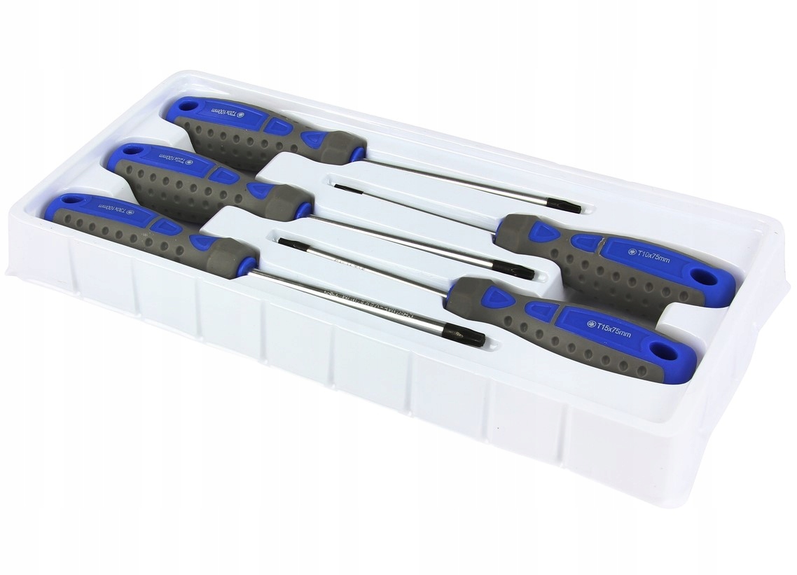 Wkrętaki posiadają magnetyczne wzmacniane groty co ułatwia chwytanie śrub i zwiększa żywotność końcówek. Część robocza wykonana ze stali chromowo-wanadowej (Cr-V) co zwiększa odporność na obrabianie, uszkodzenia i rdzę. Rękojeści zostały pokryte antypoślizgową powłoką dla pewnego i mocnego chwytu. Każda rękojeść została specjalnie wyprofilowana tak aby śrubokręt leżał jak najlepiej w dłoni. Śrubokręty posiadają w rączkach otwory umożliwiające wspomaganie się kluczem przy dokręcaniu lub odkręcaniu. Całość umieszczona w plastikowej wytłoczce oraz grubym kartonie.