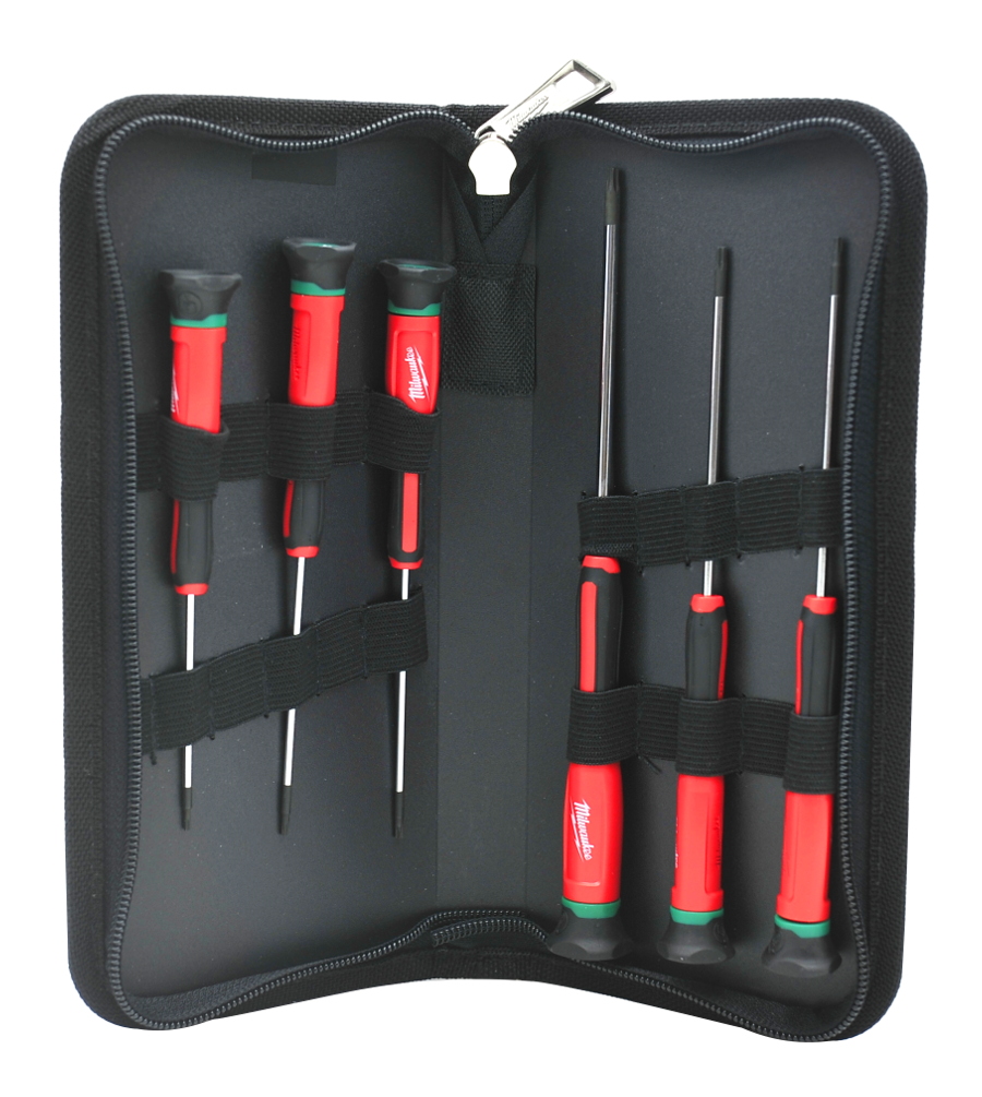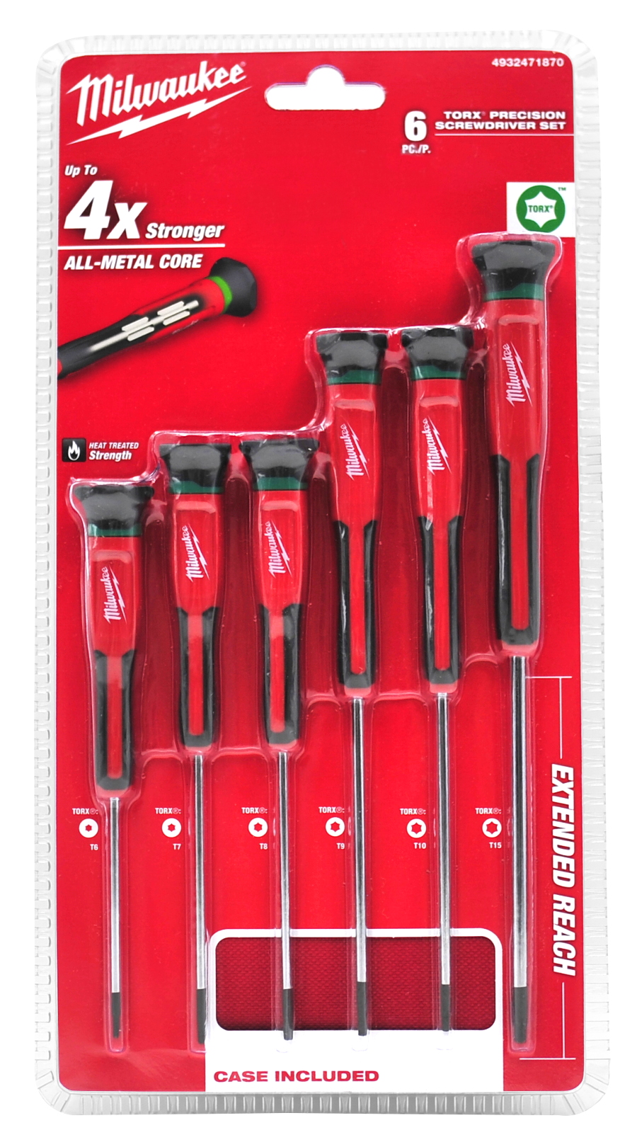 Zestaw 6 wkrętaków, śrubokrętów precyzyjnych do doskonały wybór dla majsterkowiczów którzy przywiązują wagę do jakości swoich narzędzi. Najwyższą trwałość wkrętaków zapewnia w całości metalowy rdzeń. Śrubokręty zostały wyposażone w obrotową końcówkę rękojeści 360° dla wygodniejszego użytkowania. W zestawie znajduję się poręczne, wysokiej jakości etui z suwakiem.》》》 MILWAUKEE ZESTAW PRECYZYJNYCH WKRĘTAKÓW TORX ETUI 6 szt T6-T15 4932471870 《《《