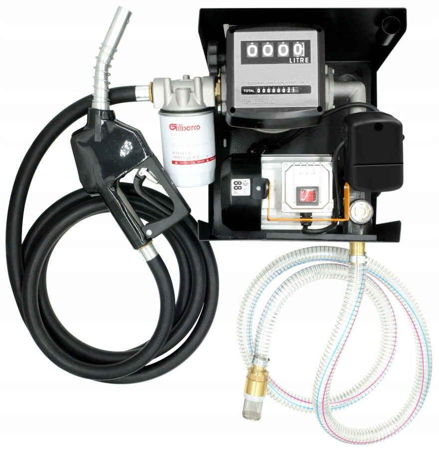 Pompa jest łatwa w instalacji. Może być zamocowana do ściany, można ją bezpośrednio podłączyć do cysterny lub umieścić na beczce. Zastosowany w urządzeniu licznik umożliwia podgląd zarówno zatankowanego aktualnie paliwa jak i całkowitej ilości paliwa przepompowanego przez urządzenie. Dystrybutor posiada samoodbijający pistolet, wąż ssący oraz podający, a całość kompletu uzupełniają metalowe końcówki i złączki. ✅ DANE TECHNICZNE: ZESTAW ZAWIERA: Dystrybutor został wyposażony w system AUTO-STOP, który zapobiega ciągłej pracy silnika. Dzięki któremu po zagięciu węża lub odbiciu pistoletu pompa po krótkiej chwili przestaje pracować bez konieczności jego wyłączania manualnie. Filtr do paliwa nadaje się do większości minidystrybutorów.
