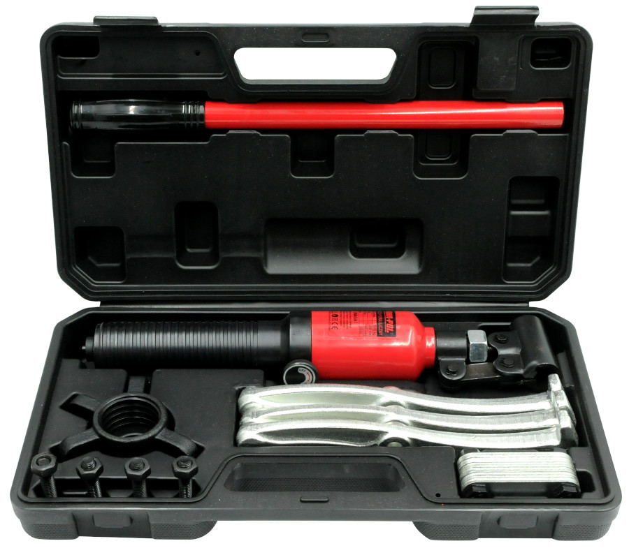 dealny do demontażu kół pasowych, łożysk, sprzęgieł, piast kół, kół zębatych, tulei, przewietrzników i innych elementów osadzonych ciasno na wale. Dzięki naszemu ściągaczowi uporasz się z każdym zadaniem szybko, sprawnie, bez wysiłku, bez używania dodatkowych narzędzi. Nasz ściągacz to bardzo przydatne narzędzie w każdym zakładzie mechanicznych, tokarskim, serwisie, przy obsłudze silników elektrycznych, przekładni, pomp wody, w ślusarstwie itd., itp. Siłownik jest wyposażony w regulację miejsca wyjściowego obręczy ramion poprzez gwint na siłowniku, istnieje także możliwość regulacji położenia ramion na pierścieniu. Siłownik hydrauliczny cechuje się prostą i intuicyjną obsługą, posiada ergonomiczne pokrętło za pomocą którego wybieramy tryb pracy siłownika. ✅ DANE TECHNICZNE: