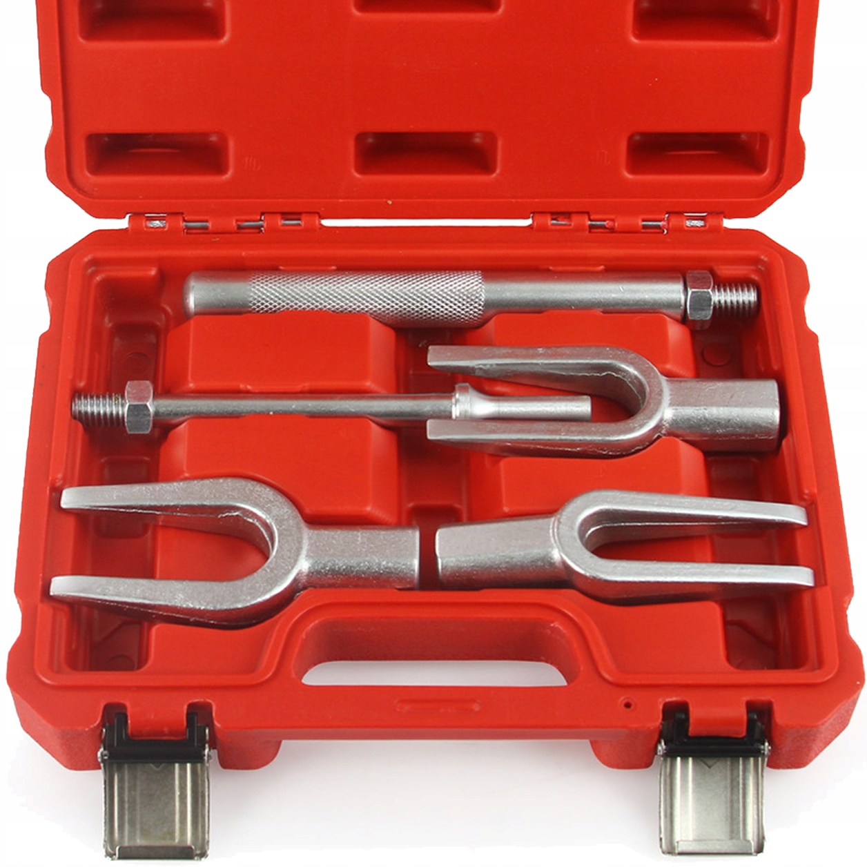 Widelce są wykonane z wysokiej jakości stali , chromowanej powierzchniowo. Posiadają proste i gładkie powierzchnie klinów rozpierających oraz ostre końcówki, które pozwalają na sprawną separację końcówki od drążka kierowniczego. Zestaw składa się z: Zestaw zapakowany w praktyczną skrzynkę. Zestaw ściągaczy do drążków kierowniczych składa się z: Widelce w rozmiarach: Dokręcane rękojeści:ŚCIĄGACZ SWORZNI DO DRĄŻKÓW KOŃCÓWEK KIEROWNICZYCH 5el.