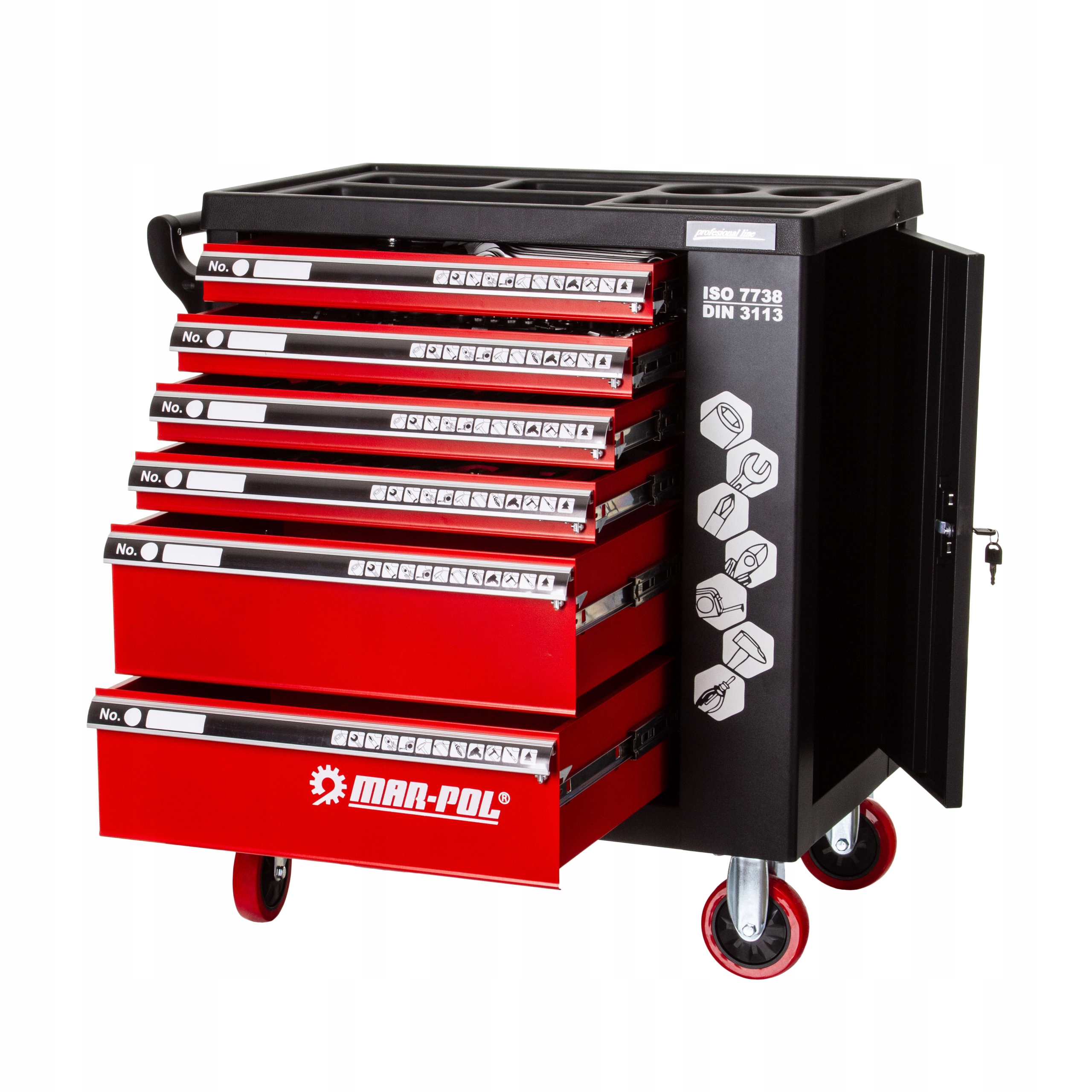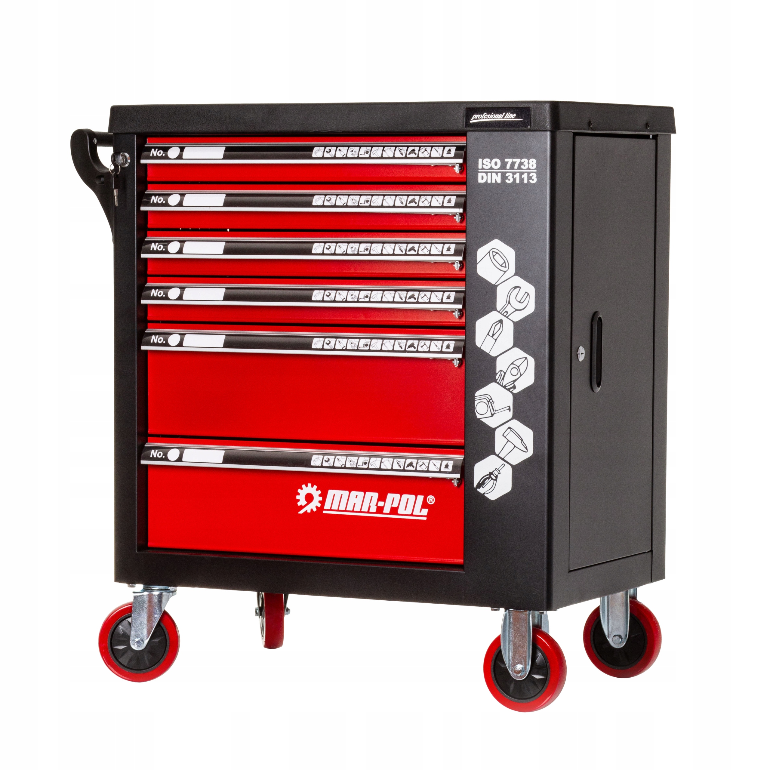 Wózek pozwala utrzymać porządek na stanowisku pracy i chroni narzędzia przed kradzieżą dzięki zamkowi na kluczyk.