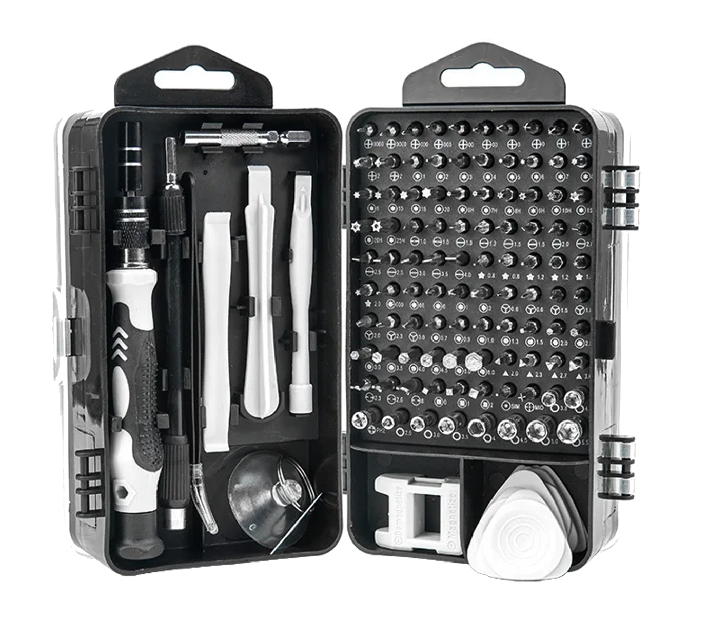 Uniwersalny, bogaty zestaw końcówek i dodatkowych akcesoriów wkrętaków precyzyjnych.