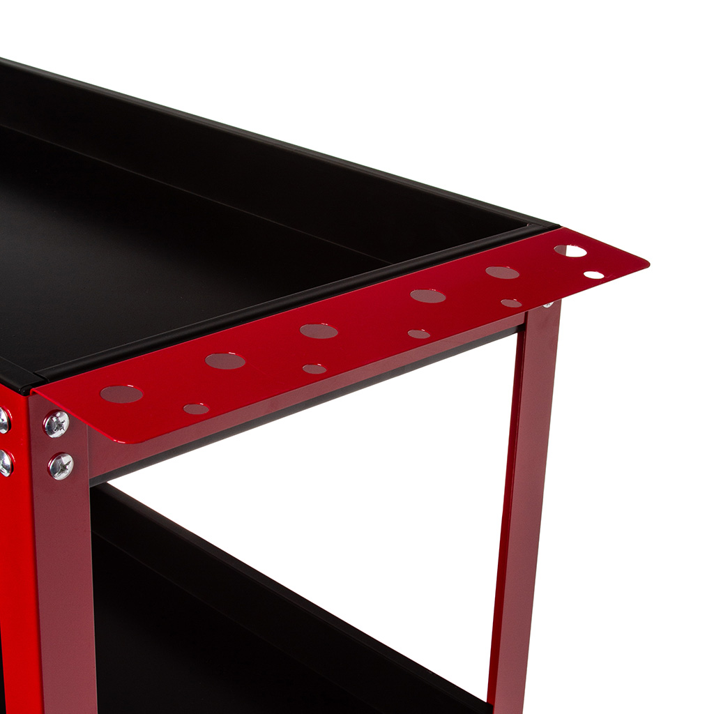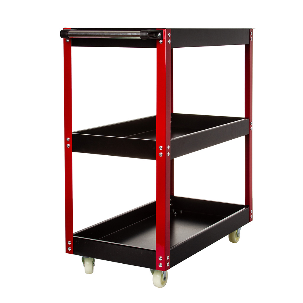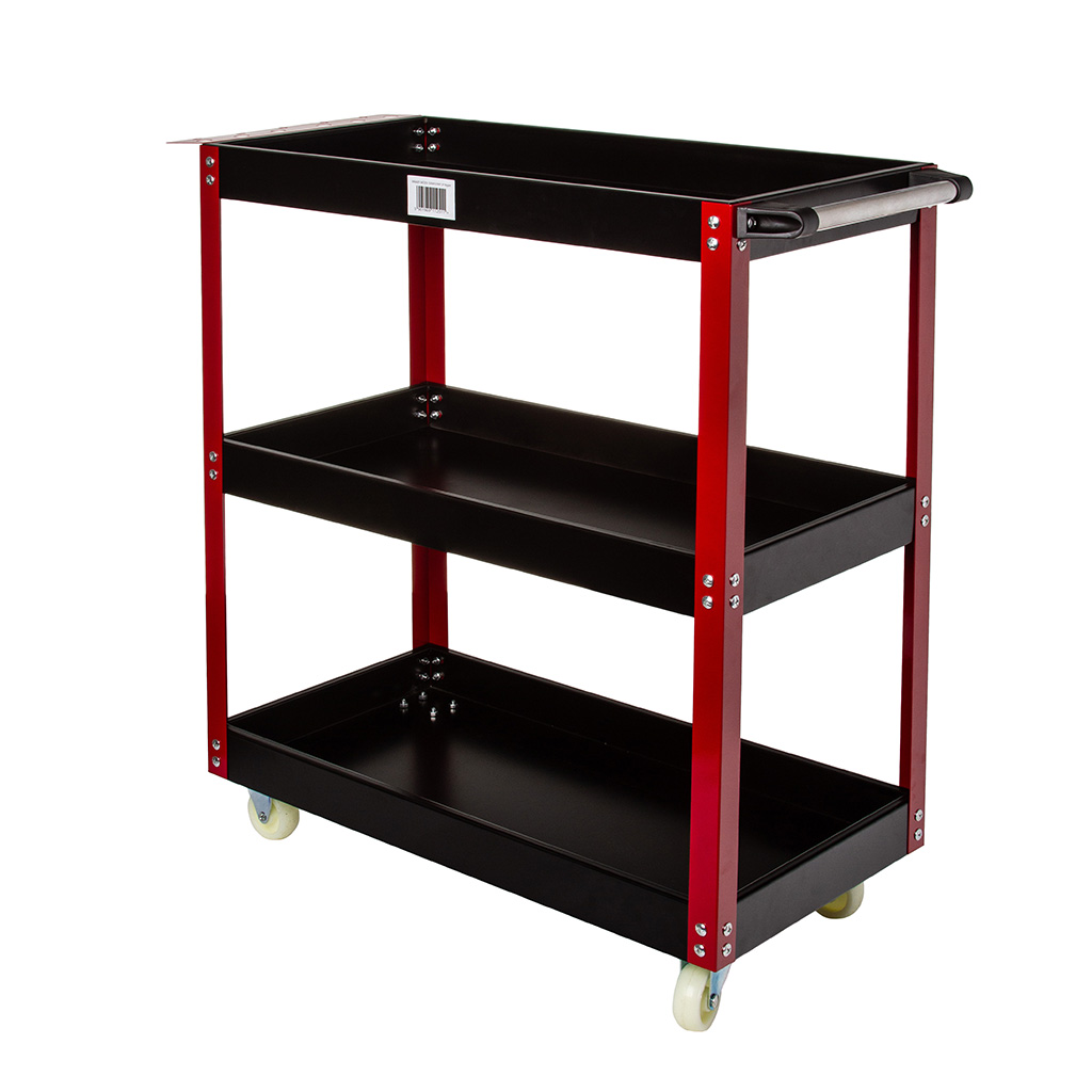 Stalowy wózek z trzema półkami. Idealnie nadaje się do warsztatów, serwisów, a także jest dobrym rozwiązaniem dla majsterkowicza. Ułatwia pracę, gdyż każde narzędzie masz zawsze pod ręką. Wyposażony został w cztery kółka dwa stała i dwa skrętne oraz metalową rączkę co ułatwia jego poruszanie. Wózek może służyć również do transportu niewielkich paczek.》》》 WÓZEK SERWISOWY DETAILINGOWY WARSZTATOWY SZAFKA 3 PÓŁKI 136KG M66605 《《《