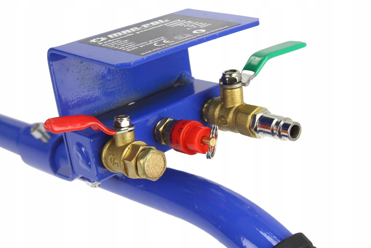- ✔️ zawory kulowe 3/8” z wygodnymi dźwigniami oznaczonymi kolorem: zasilający - zielona, spustowy - czerwona,