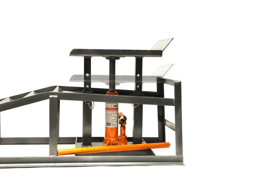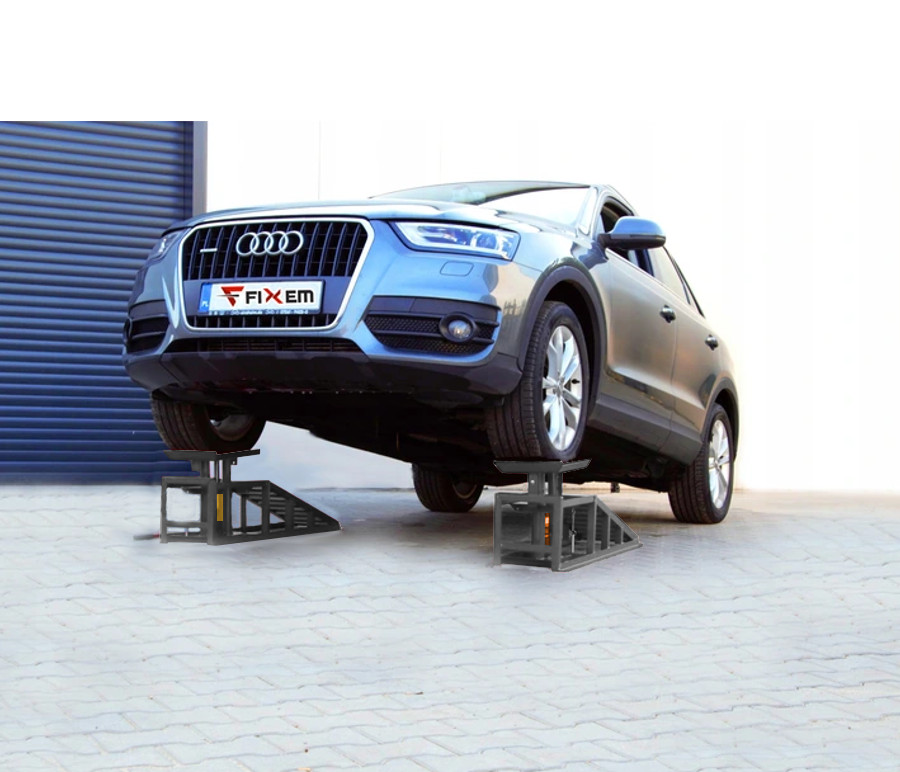 Solidne metalowe najazdy samochodowe z podnośnikami i zabezpieczeniami. Najazdy samochodowe wyposażone w podnośniki hydrauliczne słupkowe pozwalające na wysokie podniesienie samochodu. Łagodny kąt podjazdu umożliwia najazd samochodów sportowych, ponadto został skonstruowany tak, że auto możemy zatrzymać na dowolnym stopniu. Idealny do przydomowych garażów, podczas prac remontowych przy samochodzie, przeglądów podwozia, wymiany olejów i wiele wiecej. Dodatkowo wyposażone w bezawaryjny słupkowy podnośnik hydrauliczny, wyposażony w DODATKOWE zabezpieczenia na ŁAŃCUCHACH. Podest na koło został wyposażony w dwa zabezpieczenia: BLOKADY ZABEZPIECZAJĄCE AUTO PRZED NIEKONTROLOWANYM ZSUNIĘCIEM SIĘ ✅ Parametry techniczne: